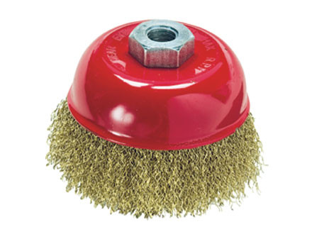 Щетка изготовлена из стальной проволоки. Латунное покрытие. Применяется для очистки металлических поверхностей от ржавчины и грязи в щадящем режиме. Тип посадки – М14.