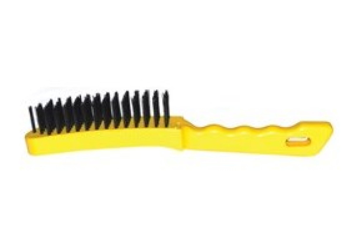 Предназначена для работ по зачистке поверхностей вручную. Эргономичная пластмассовая рукоятка длиной 275 мм. Проволока: 12 пар толщиной 0,3 мм с антикоррозийным покрытием.