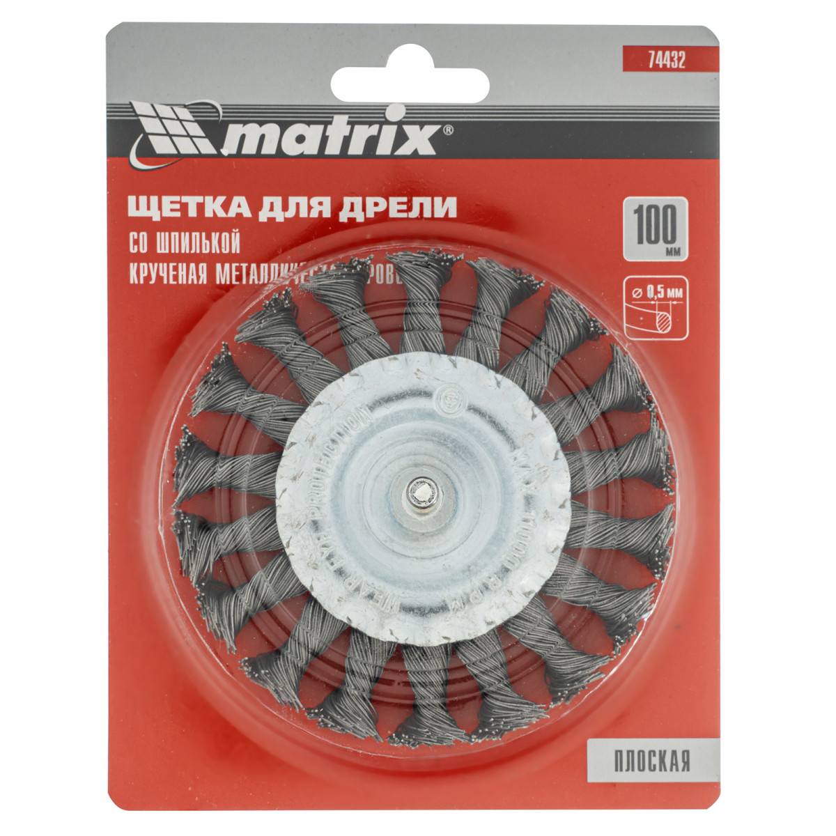 Щетка для дрели, 100 мм, плоская со шпилькой, крученая металлическая проволока Matrix