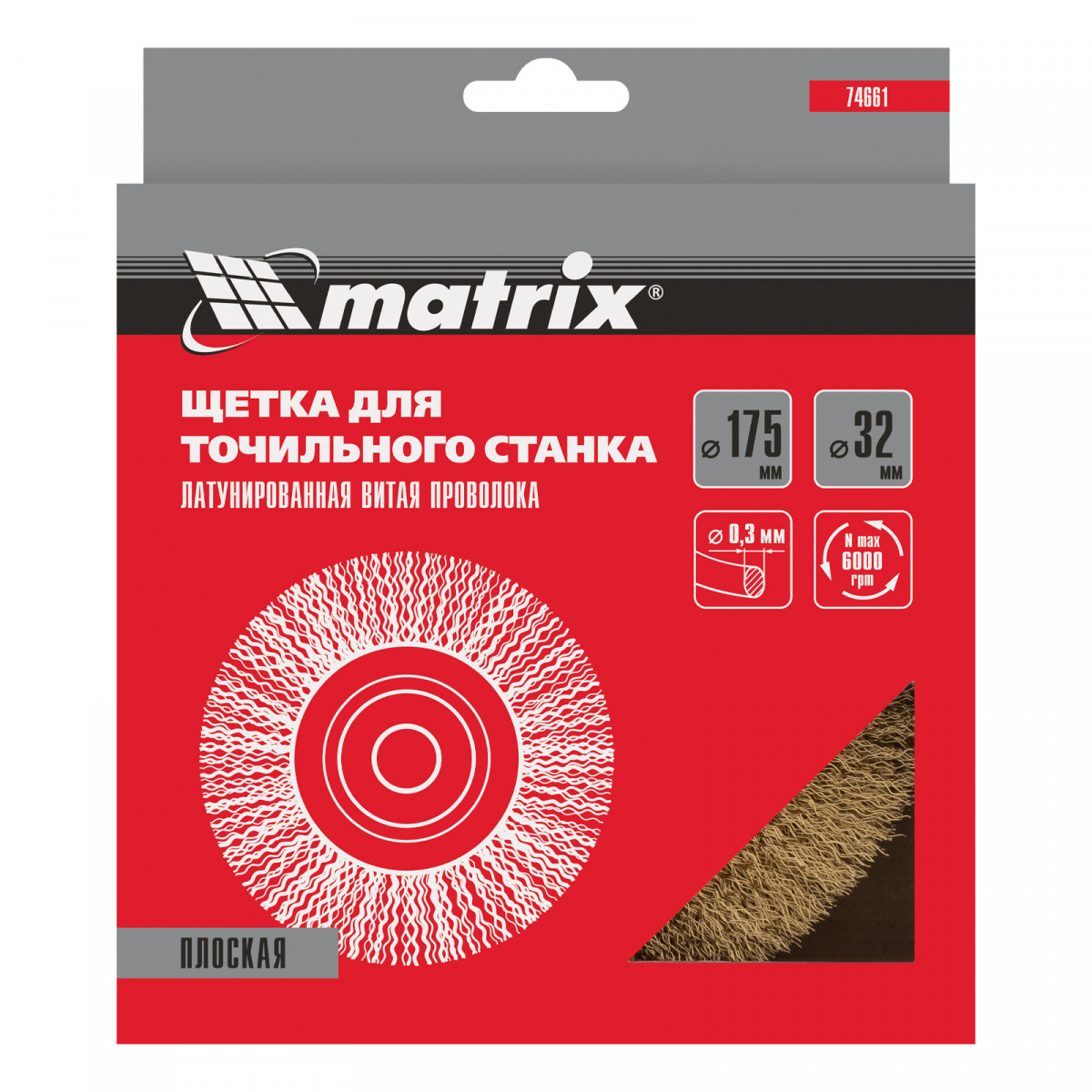 Щетка для точила, 175 мм, посадка 32 мм, плоская, латунированная витая проволока Matrix