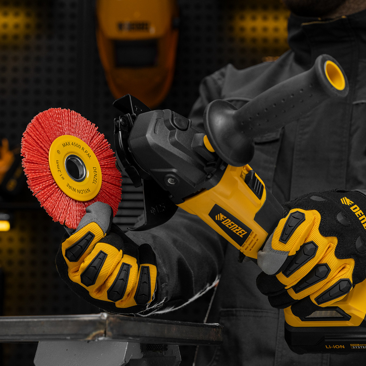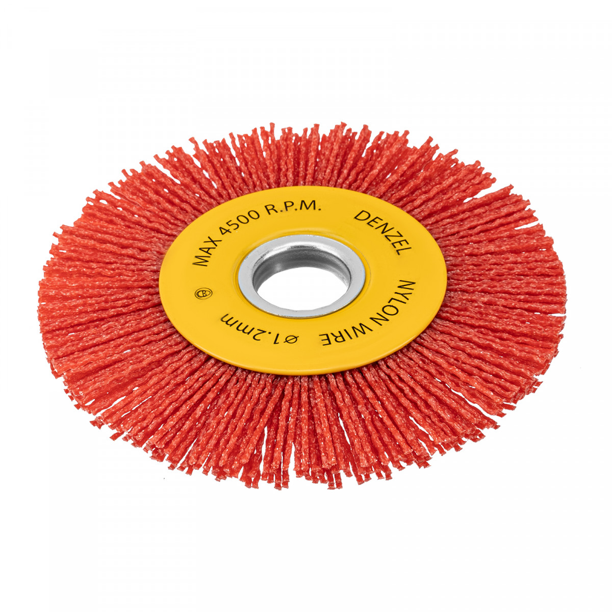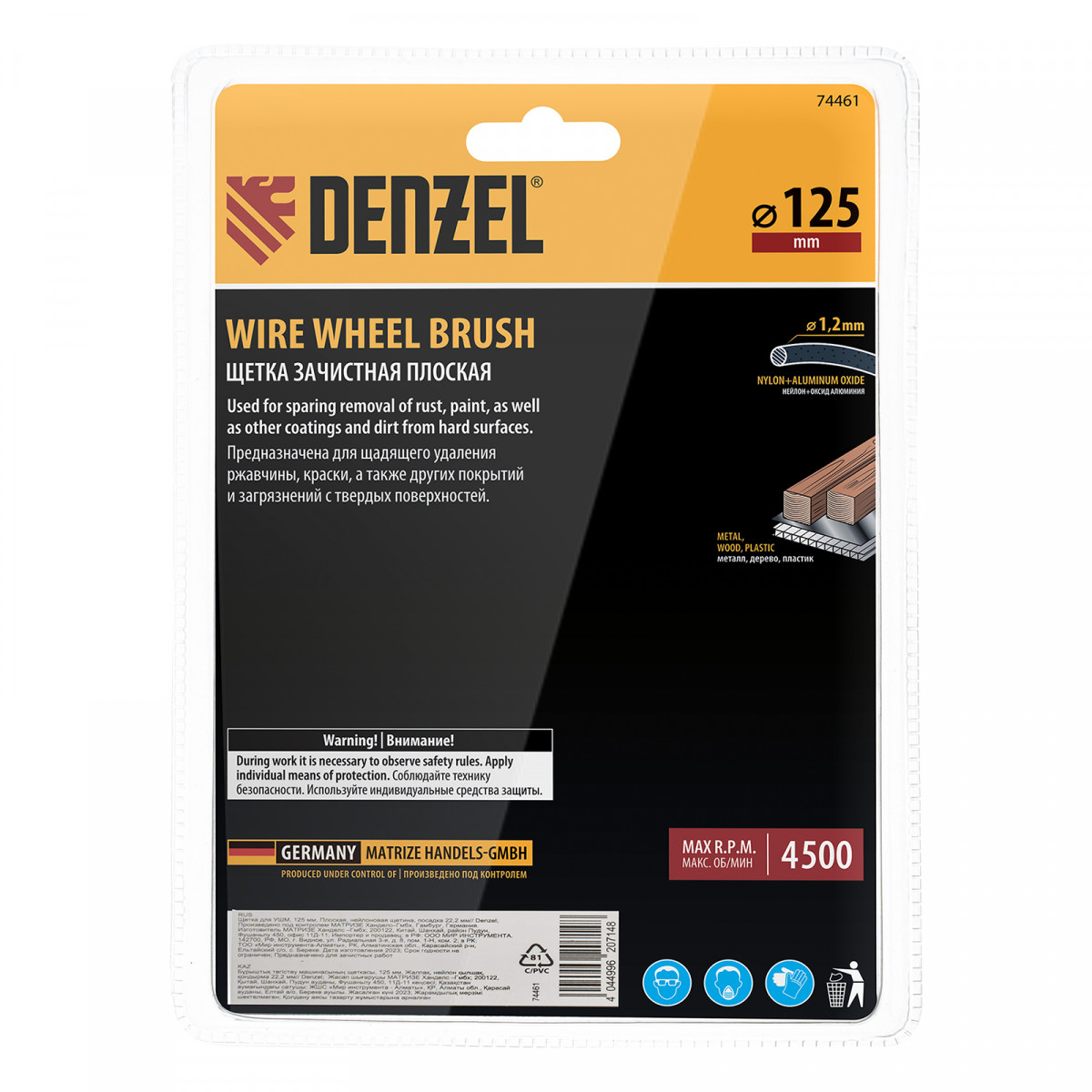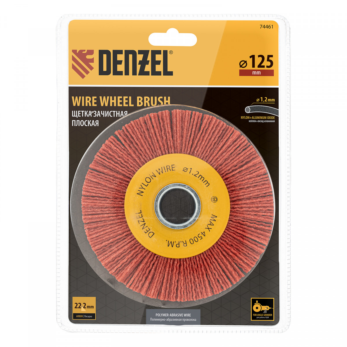 Щетка для УШМ, 125 мм, Плоская, нейлоновая щетина, посадка 22,2 мм Denzel