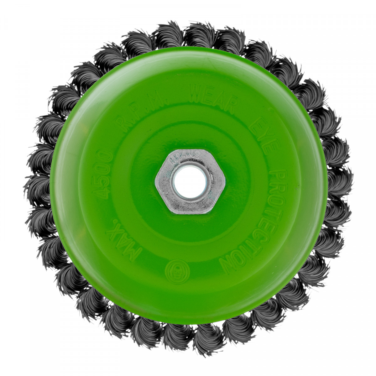 Щетка Сибртех «Чашка» 746297 диаметром 150 мм, с присоединительной резьбой М14, с щетиной из крученой проволоки диаметром 0,5 мм, устанавливается на УШМ, поддерживающую работу со скоростью 4500 об/мин. Изделие предназначено для грубой (черновой) обработки поверхностей и подходит для удаления загрязнений, снятия толстого слоя ржавчины, ЛКМ, зачистки сварных швов.