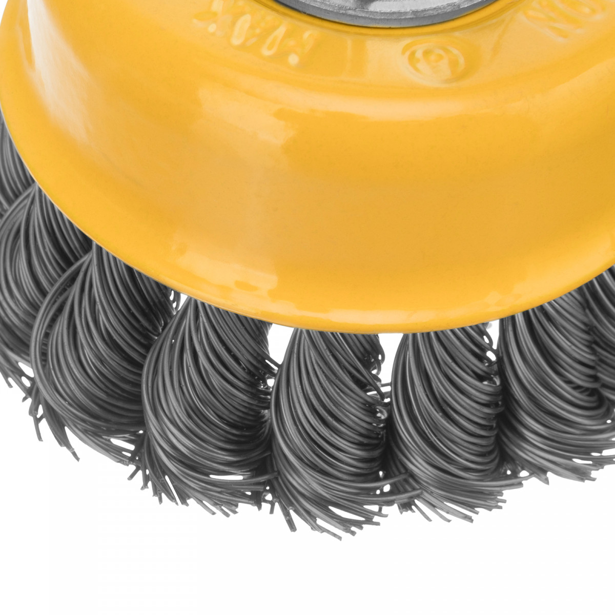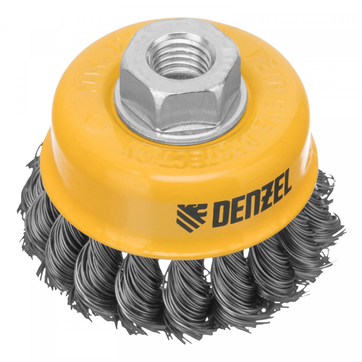 Щетка для УШМ, 75 мм, "Чашка", крученая нержавеющая проволока 0.5 мм, М14 Denzel