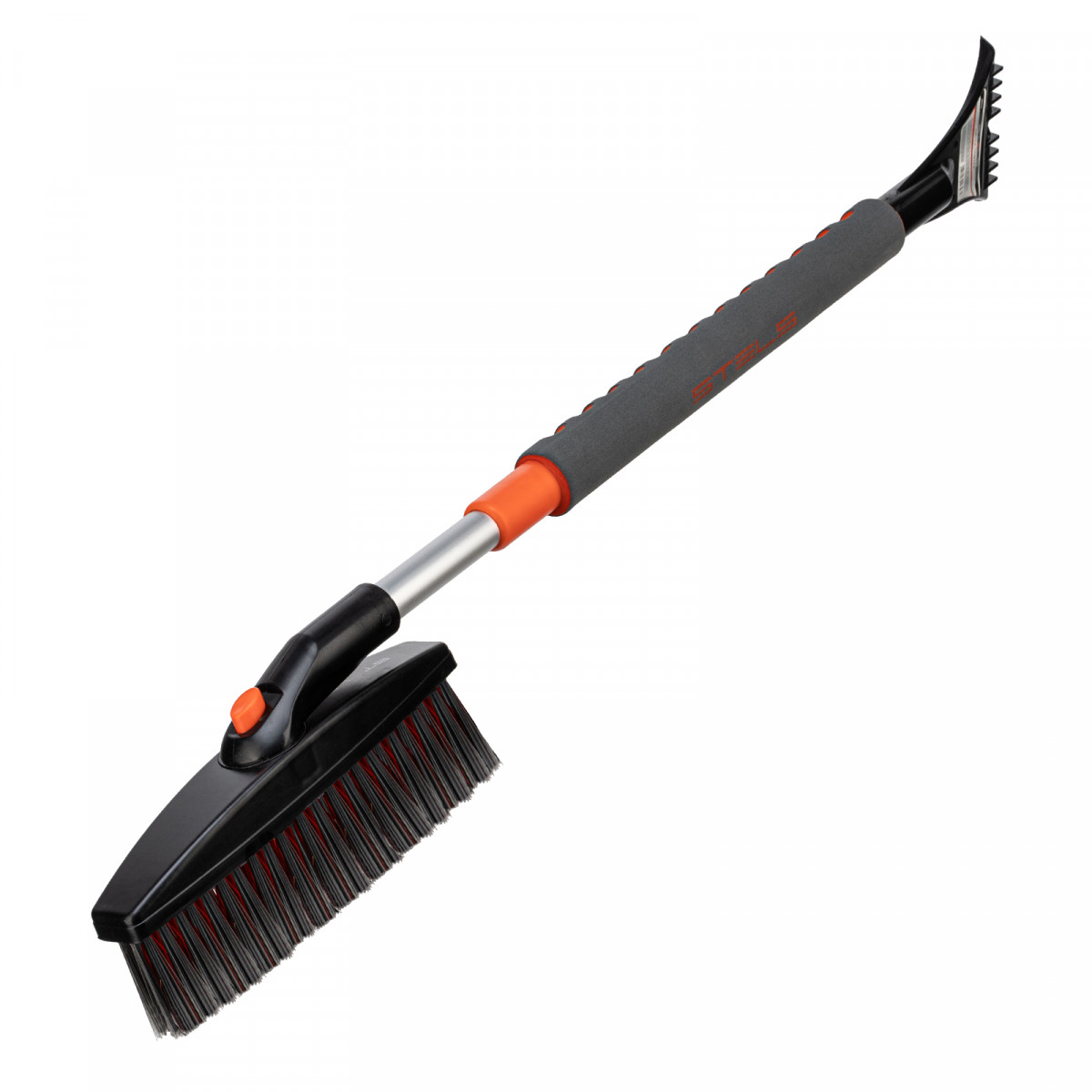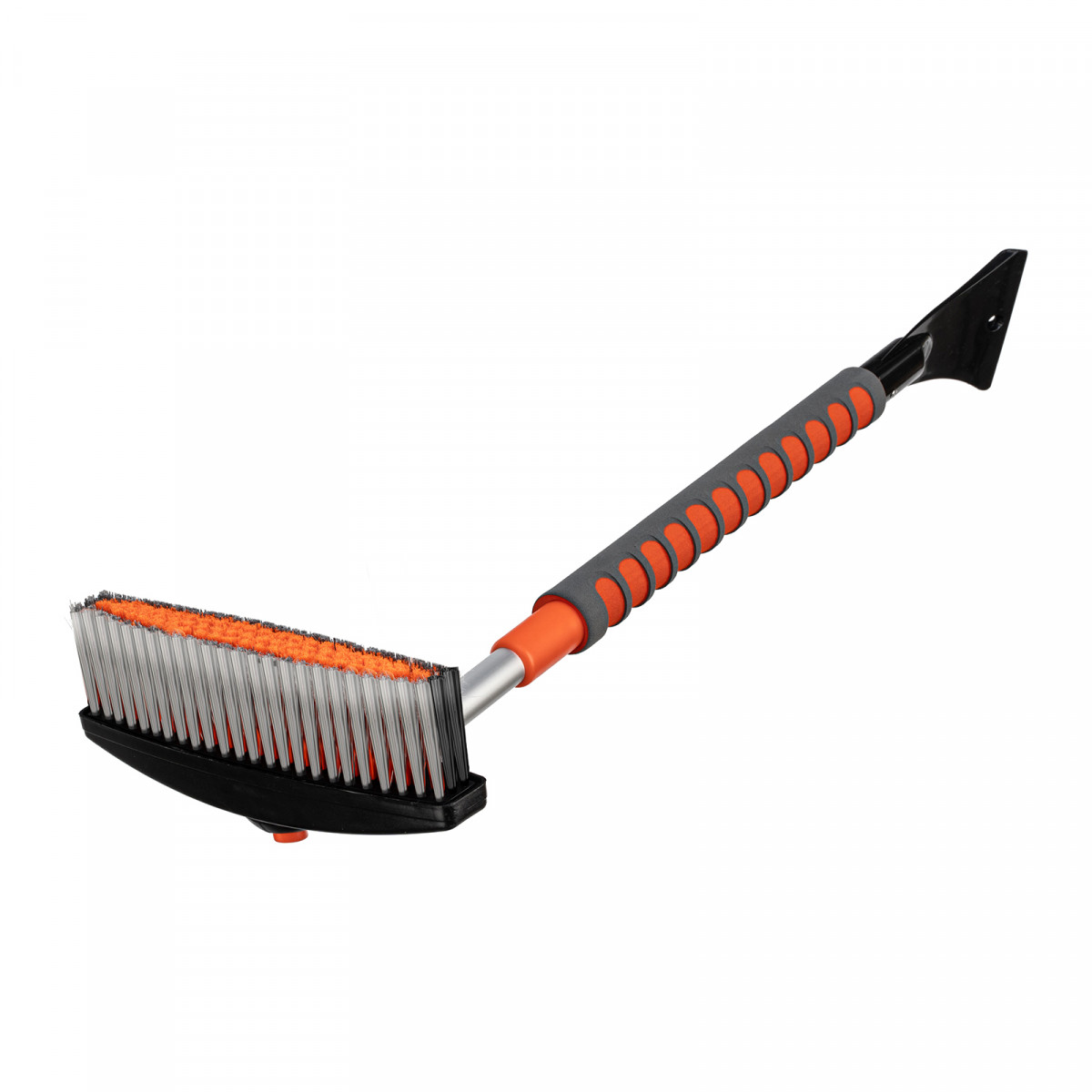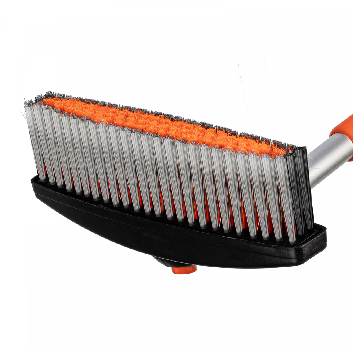 • Щетка-скребок имеет плотную щетину, распушенную на концах, поэтому эффективно убирает слой снега, не царапая поверхность кузова.