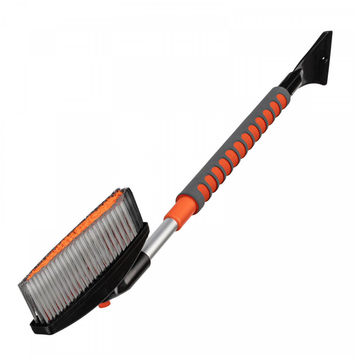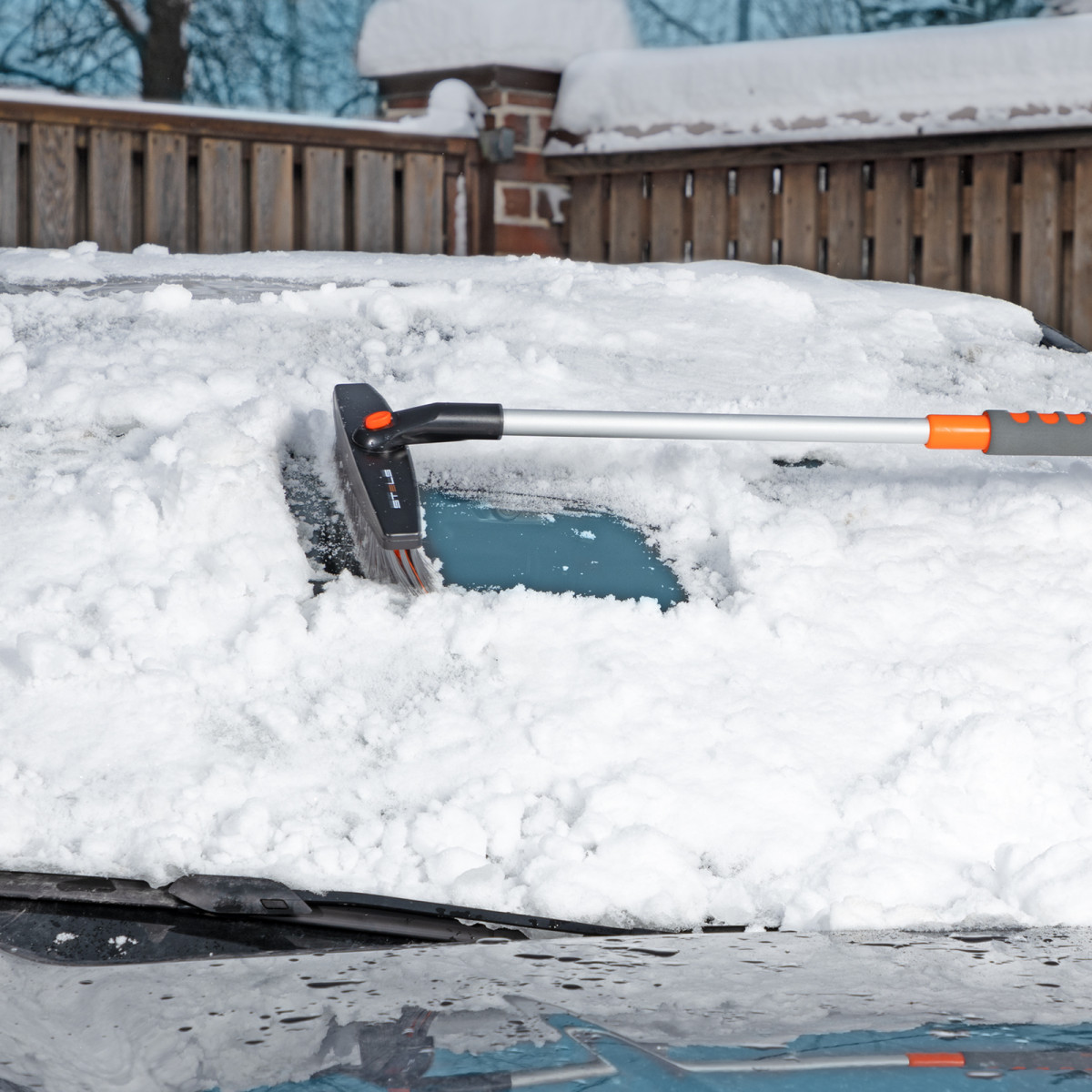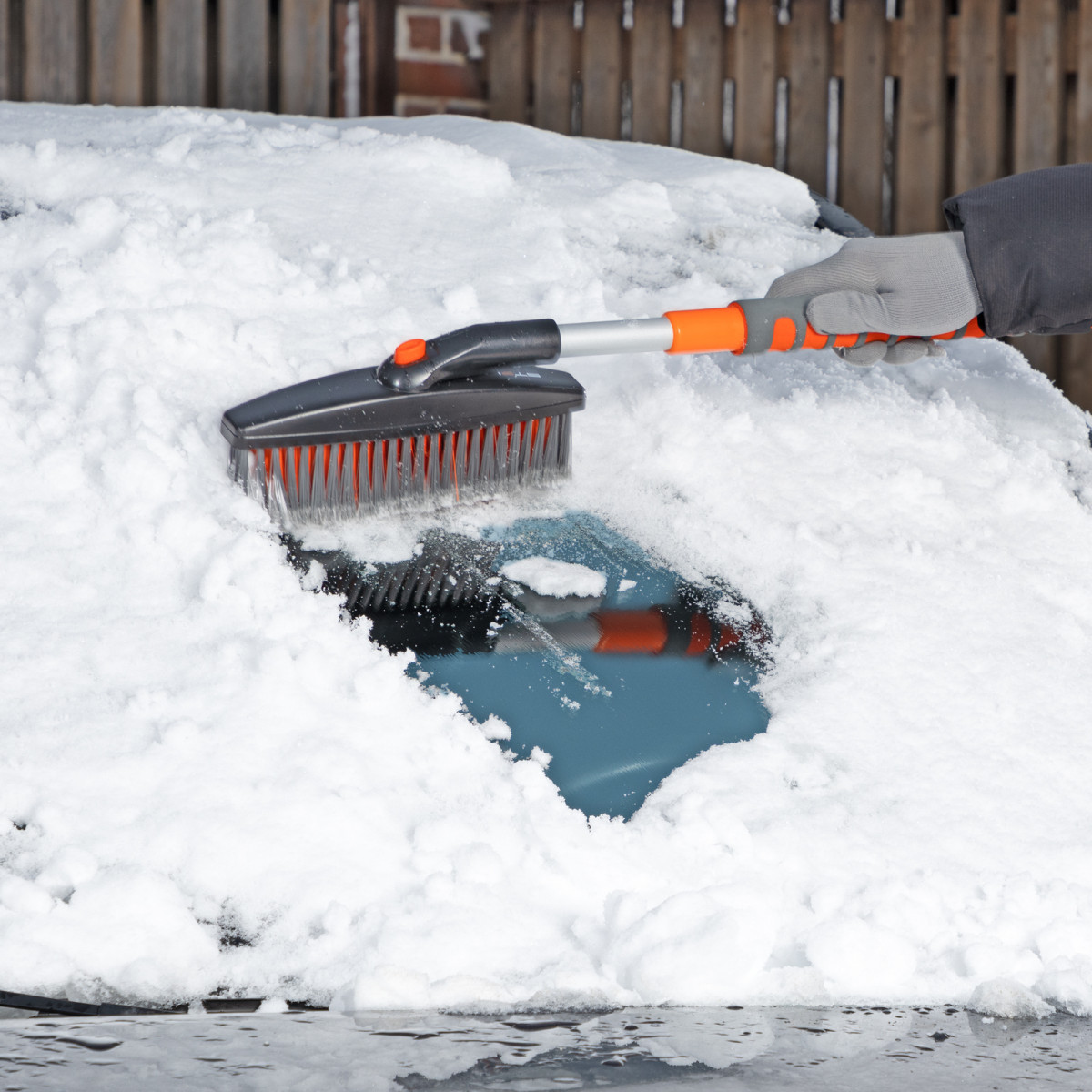 • Щетка-скребок имеет плотную щетину, распушенную на концах, поэтому эффективно убирает слой снега, не царапая поверхность кузова.