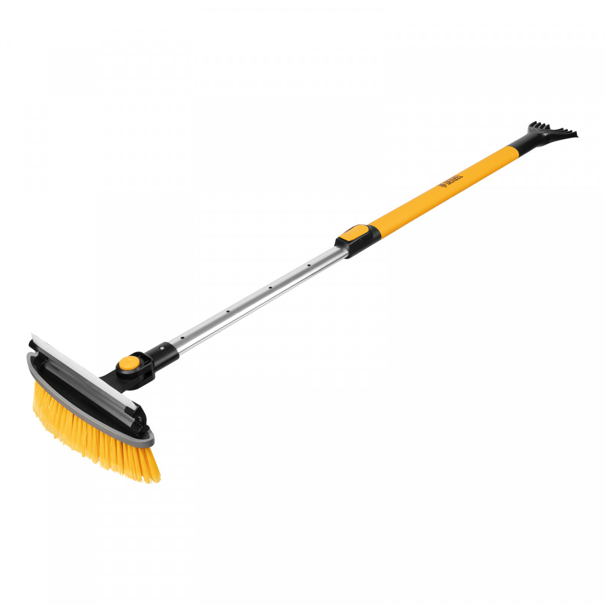 • Регулировка длины — рукоятка выдвигается и фиксируется на длине 950-1320 мм, за счет чего можно без труда очистить крышу транспортного средства.