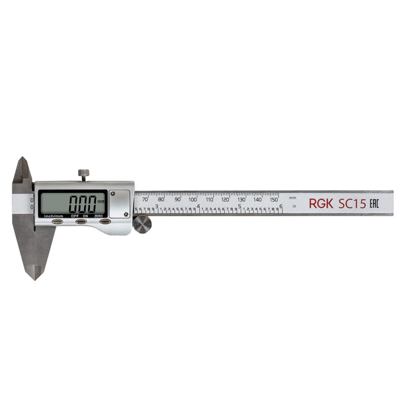 Электронный штангенциркуль RGK SC15 — это универсальный измерительный инструмент, который предназначается для высокоточного измерения наружных и внутренних линейных размеров, а также - глубин отверстий.Штангенциркуль RGK SC15 - это прибор высокой точности, является распространенным инструментом измерения, поскольку удобен в обращении, имеет простую конструкцию, и способен проводить измерения с максимальной скоростью.Штангенциркуль имеет измерительную штангу с основной шкалой и нониус – вспомогательную шкалу, применяемую для отсчета долей делений. Максимальная точность измерений - ±0,03 мм, минимальное значение измерения - 0,01 мм. Более точные показания можно получить только при помощи микрометра, который может снимать показания с точностью до тысячных долей миллиметра.