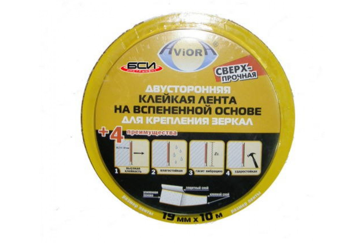Скотч двухсторонний AVIORA на вспененной основе 19мм*10м для крепления зеркал, черный