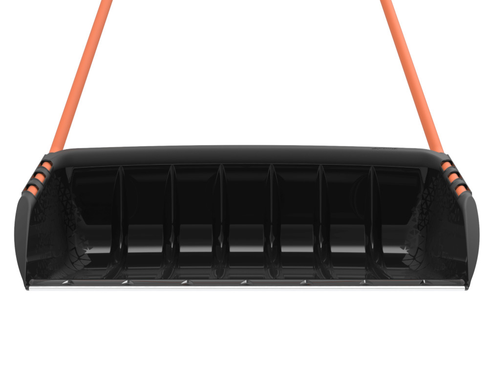 Скребком убирают большие территории. Им быстрее очистить участок, дорогу или подъезд к гаражу, чем лопатой. У скребка есть рёбра, которые приподнимают рабочую кромку над неровностями. Скрепер усилен планкой из алюминиевого сплава, которая защищает от ударов. Снег не вывалится из скребка, у него высокие борта. Задний борт усилен, в него можно упереться ногой. Изготовлен из морозостойкого и ударопрочного материала. Выдержит Сибирские морозы, и не сломается, если упереться в твёрдые камни. У него эргономичная стальная ручка, скрепер удобно толкать вперед.