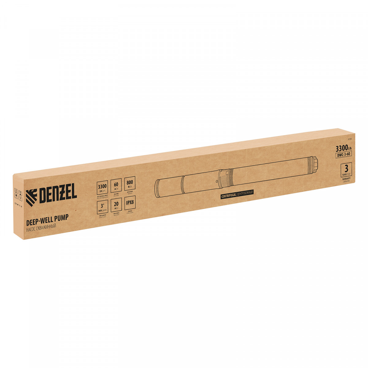 Скважинный насос DWC-3-60, центробежный, диаметр 3", 800 Вт, 3300 л/ч, напор 60 м Denzel