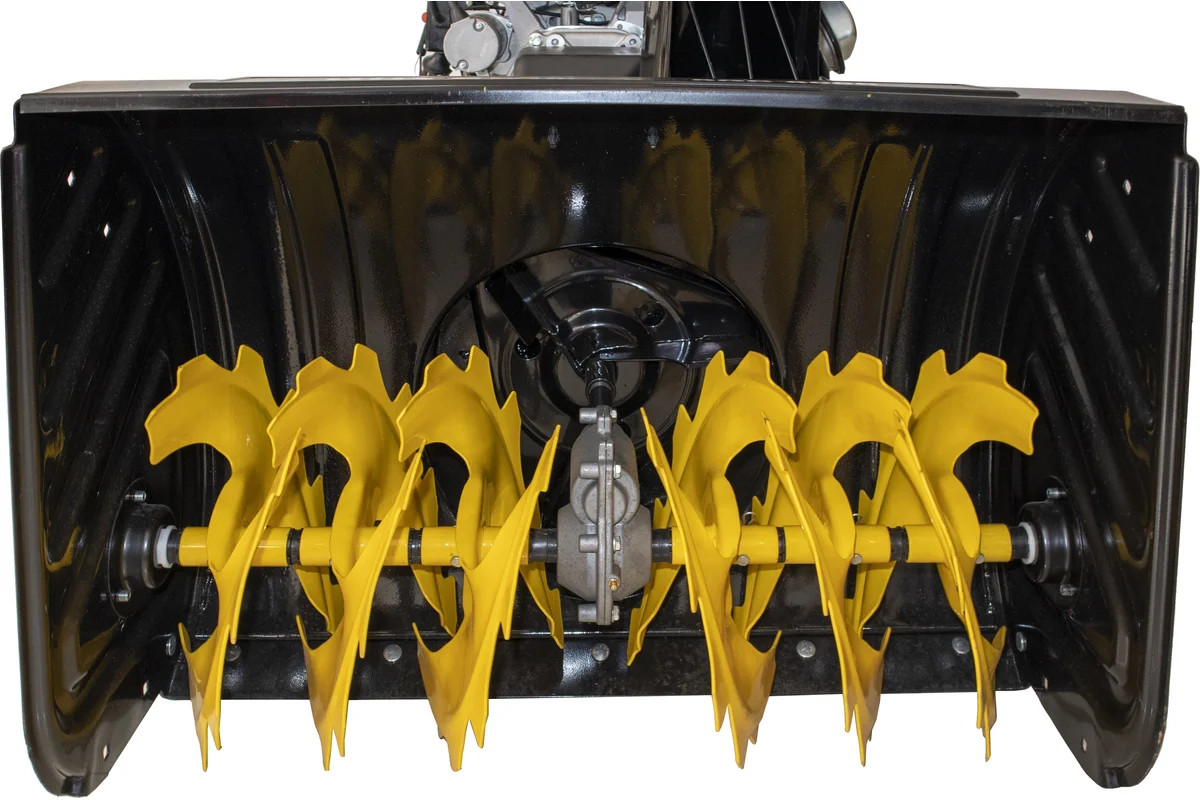 • Прочные металлические лопасти шнека позволяют легко измельчить примерзший снег