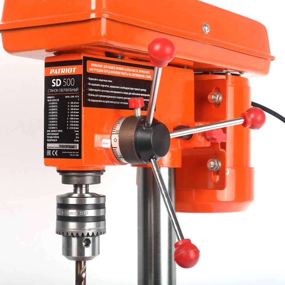 Сверлильный станок PATRIOT SD 500 160301380 подходит как для домашних мастеров, так и для профессионального использования на производстве. Станок позволяет выполнять высверливание отверстий в металле или древесине.