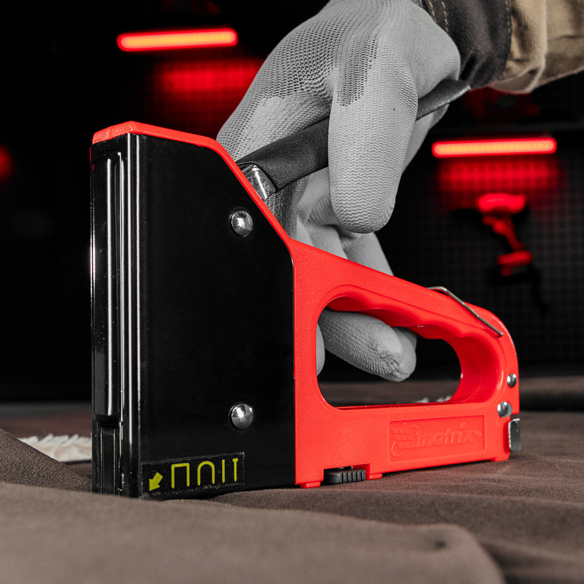 Мебельный 4-функциональный степлер Matrix 40905 используется для крепежных работ и совместим со скобами наиболее востребованных типов — 53 размером 6-14 мм, 300 и 500 размером 14 мм, а также полукруглыми скобами 28 типа размером 12 мм. Благодаря этому инструмент универсален и может использоваться для крепления к деревянным основаниям различных материалов — фанеры, ДСП, ДВП, оргалита, пленки или утеплителя. Пригодится для сборки и обивки мебели, укладки напольных покрытий, прокладки низковольтных кабелей, а также для выполнения отделочных и багетных работ.