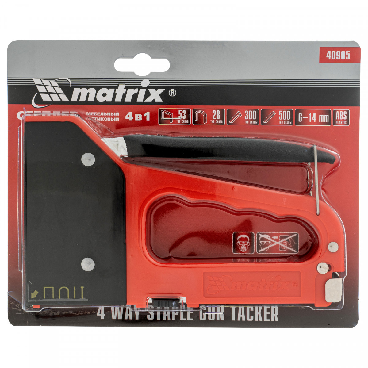 Степлер мебельный 4-функциональный пластиковый, тип скобы: 53, 28, 300, 500, 6-14 мм Matrix