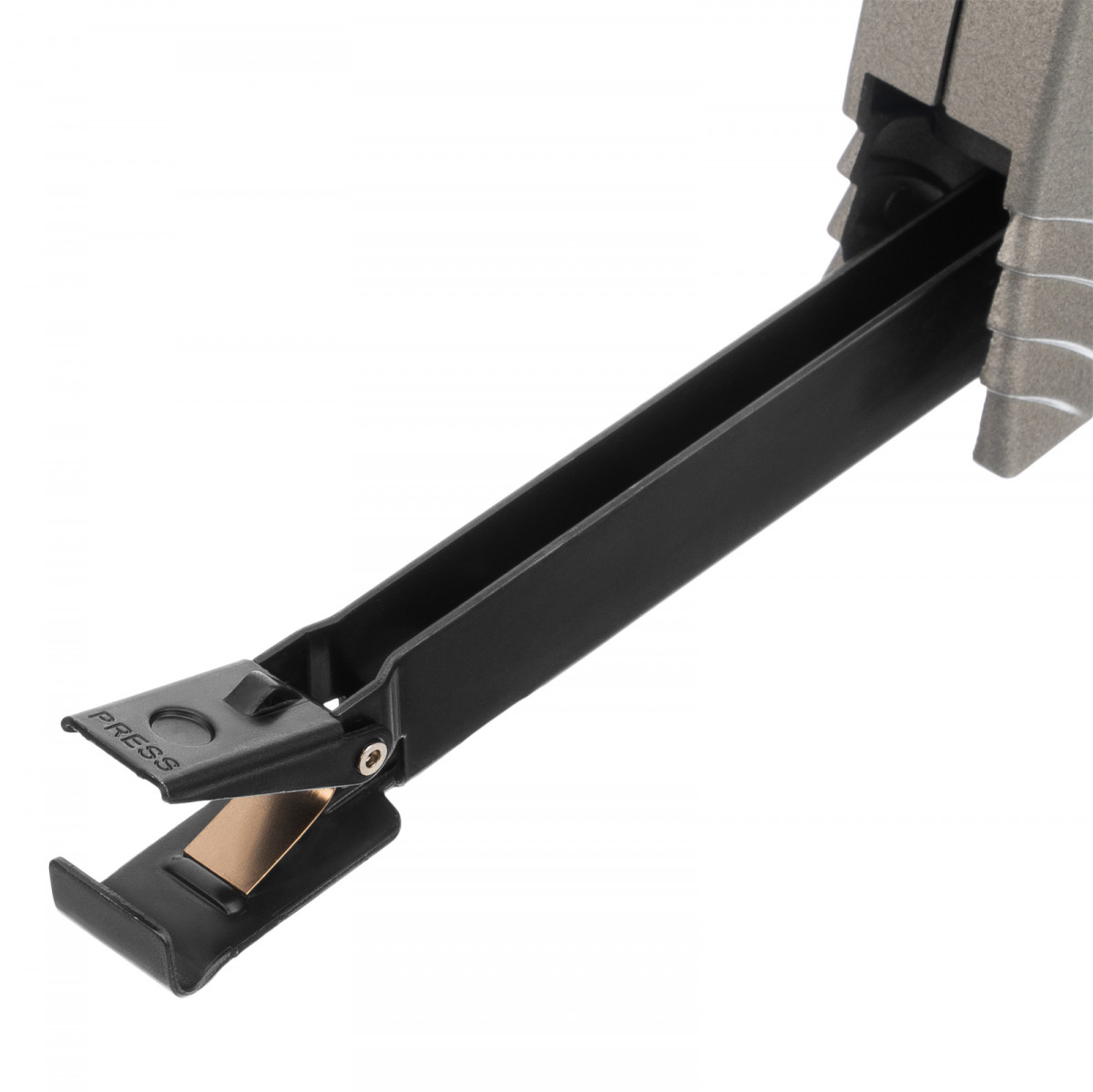- Безопасность — рукоятка надежно фиксируется в горизонтальном положении во время перезарядки степлера, его хранения или транспортировки.