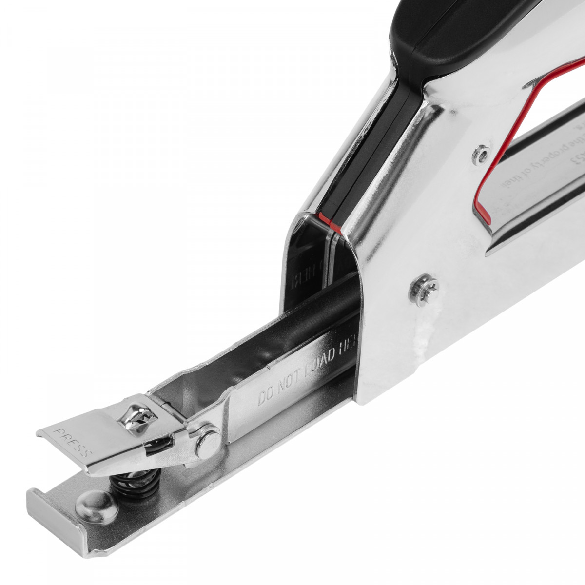 • Высокая эффективность — двухпозиционный регулятор силы удара позволяет контролировать глубину забивания скобы и устанавливать оптимальную мощность в зависимости от плотности скрепляемых материалов.