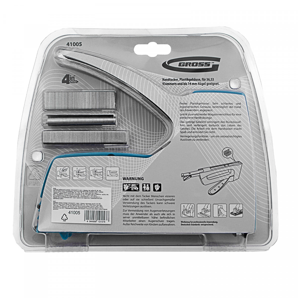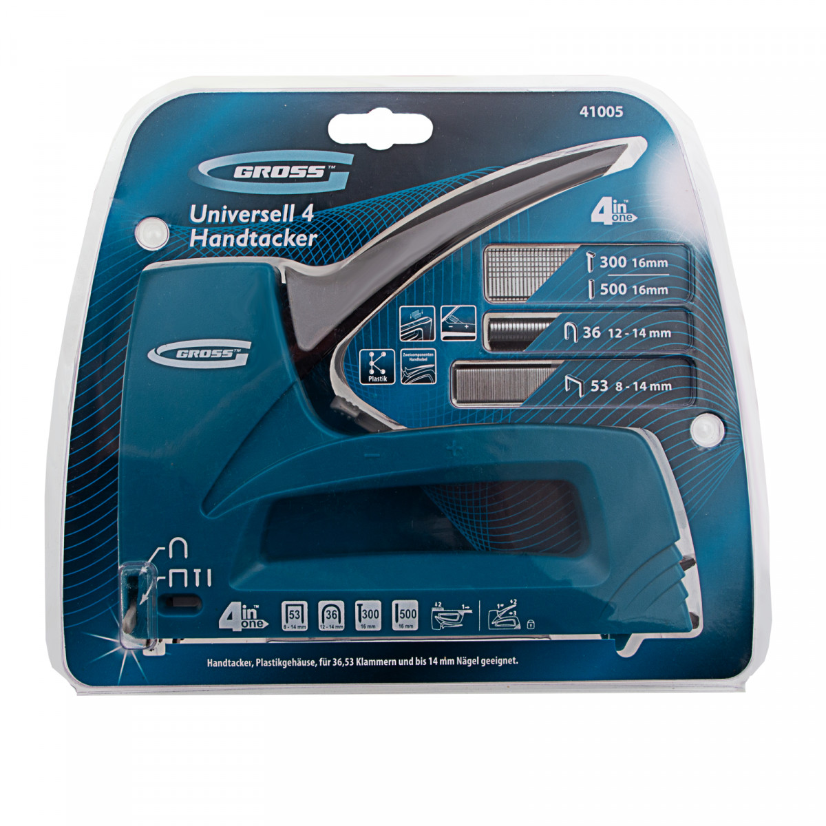 Степлер мебельный универсальные (Universell 4) пластик, 4 функции, тип скобы: 53, 36, 300, 500, 8-14мм Gross