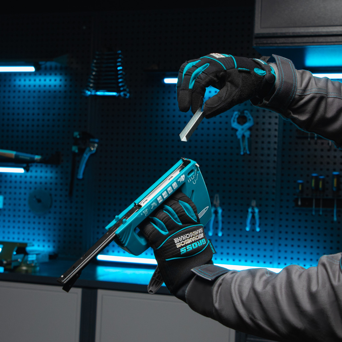 • Удобство эксплуатации — быстрая загрузка скоб сокращает время на подготовку к работе и извлечение застрявших крепежей, при помощи удлиненного носика можно забивать скобы в труднодоступных местах.