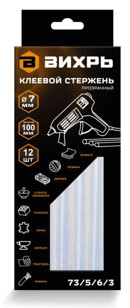 Стержень клеевой ВИХРЬ 7х100мм (уп.12шт)