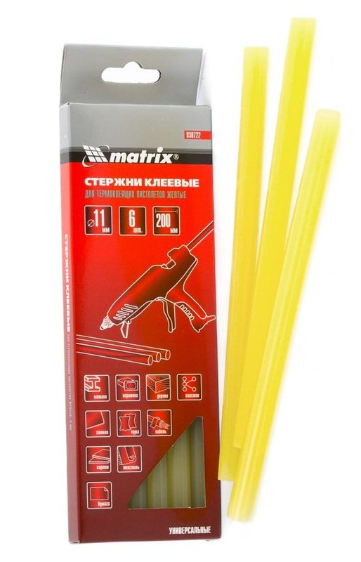 Стержни 11*200 мм клеевые для термоклеевых пистолетов, желтые, 6шт/упак. MATRIX