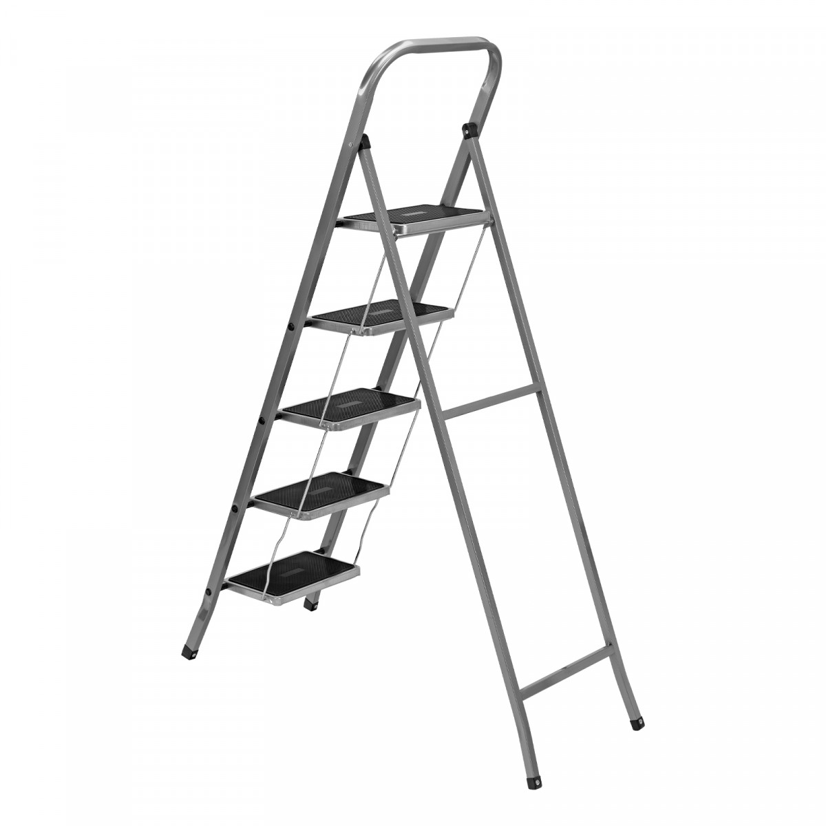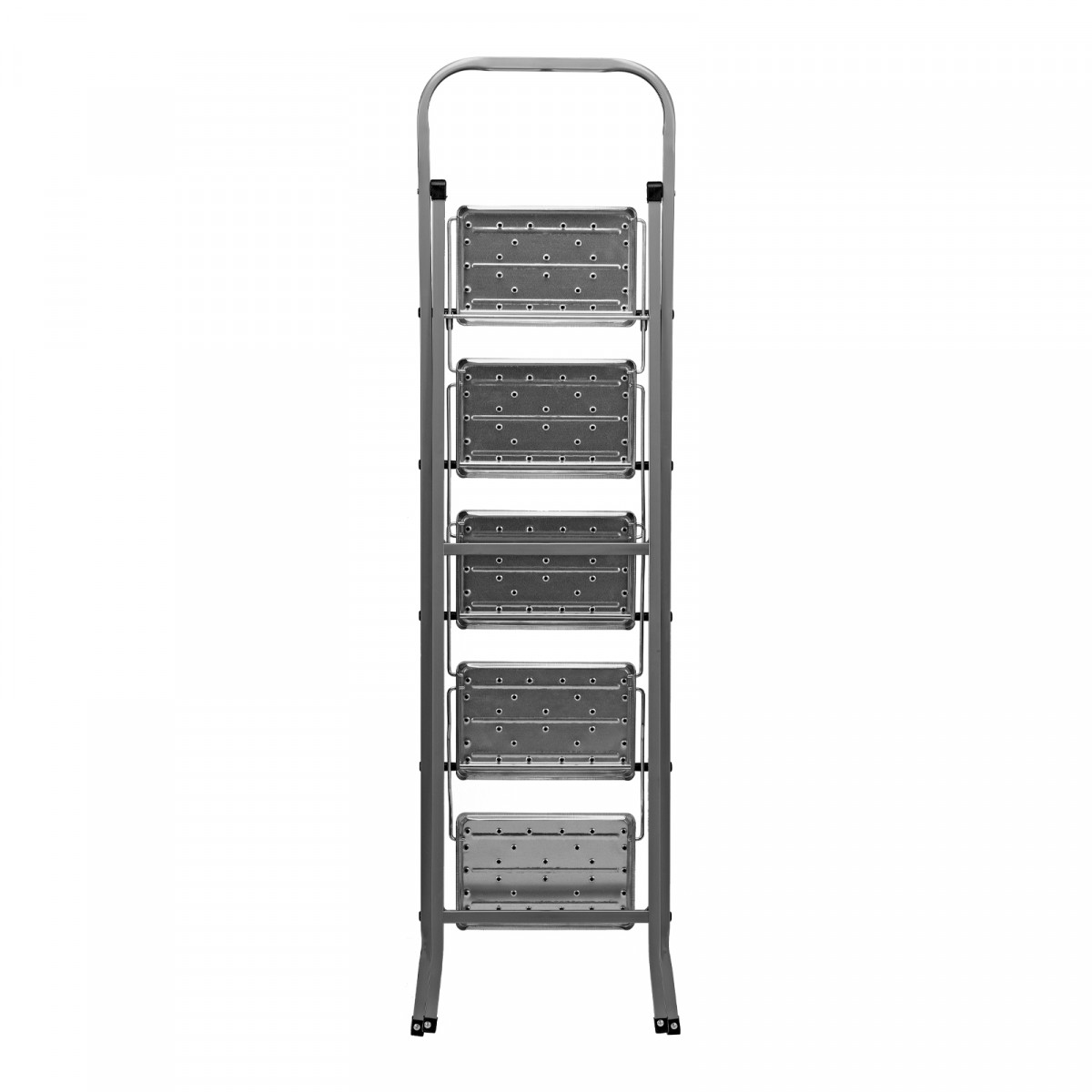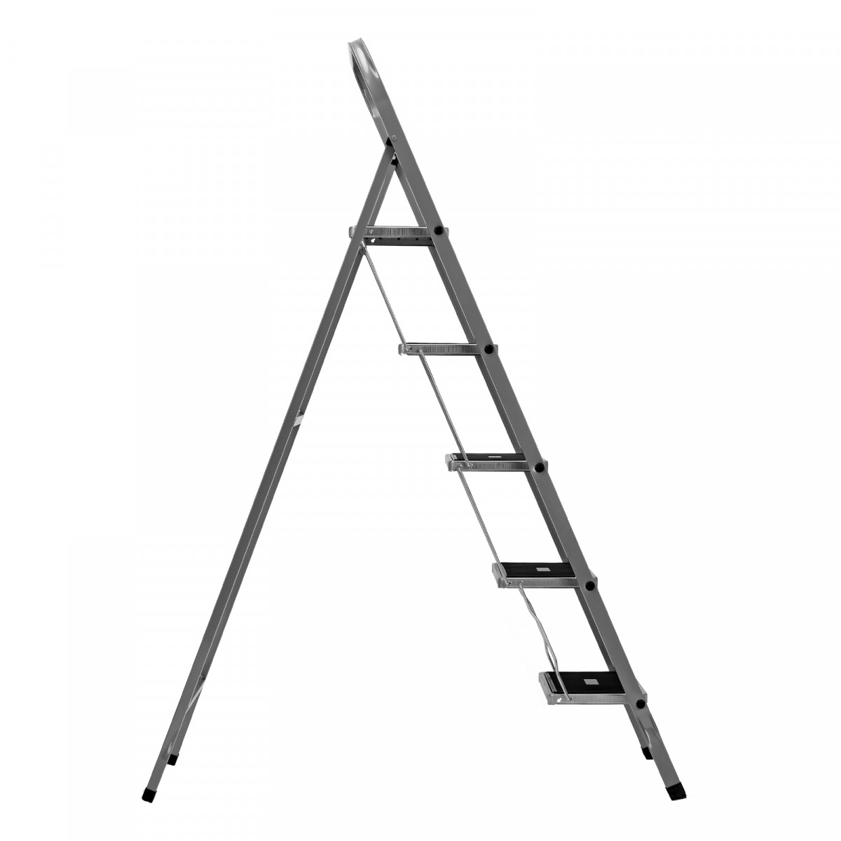 • Прочность — рама и ступени изготовлены из стали, поэтому стремянка выдерживает нагрузку 120 кг.