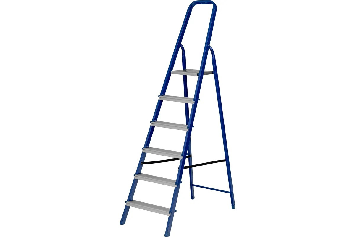 Стремянка 6 ступеней стальной профиль алюминиевые ступени Сибртех