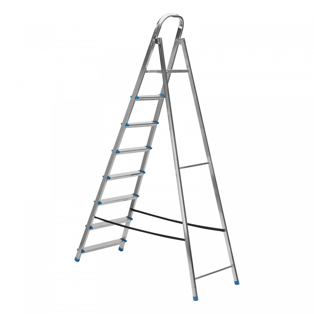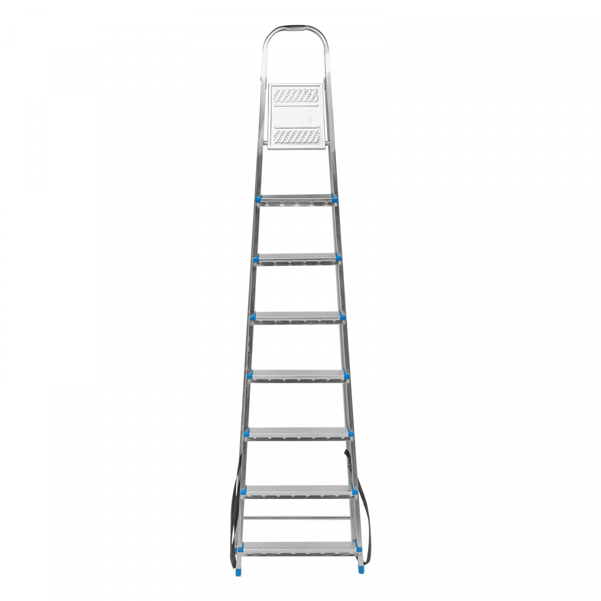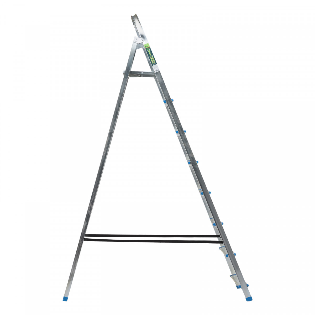 Стальная оцинкованная стремянка Сибртех 97840 с 8 ступенями позволяет выполнять ремонтные и садовые работы, для которых требуется доступ к предметам на высоте. Рама и ступени из стального профиля выдерживают вес до 120 кг. Расстояние от опорной поверхности до площадки составляет 166 см, при среднем росте пользователя 170 см рабочая высота лестницы — 366 см. Необходимо соблюдать технику безопасности: размещать стремянку только на ровной плоскости и не использовать ее для работы с дрелью, шуруповертом и другим электроинструментом.