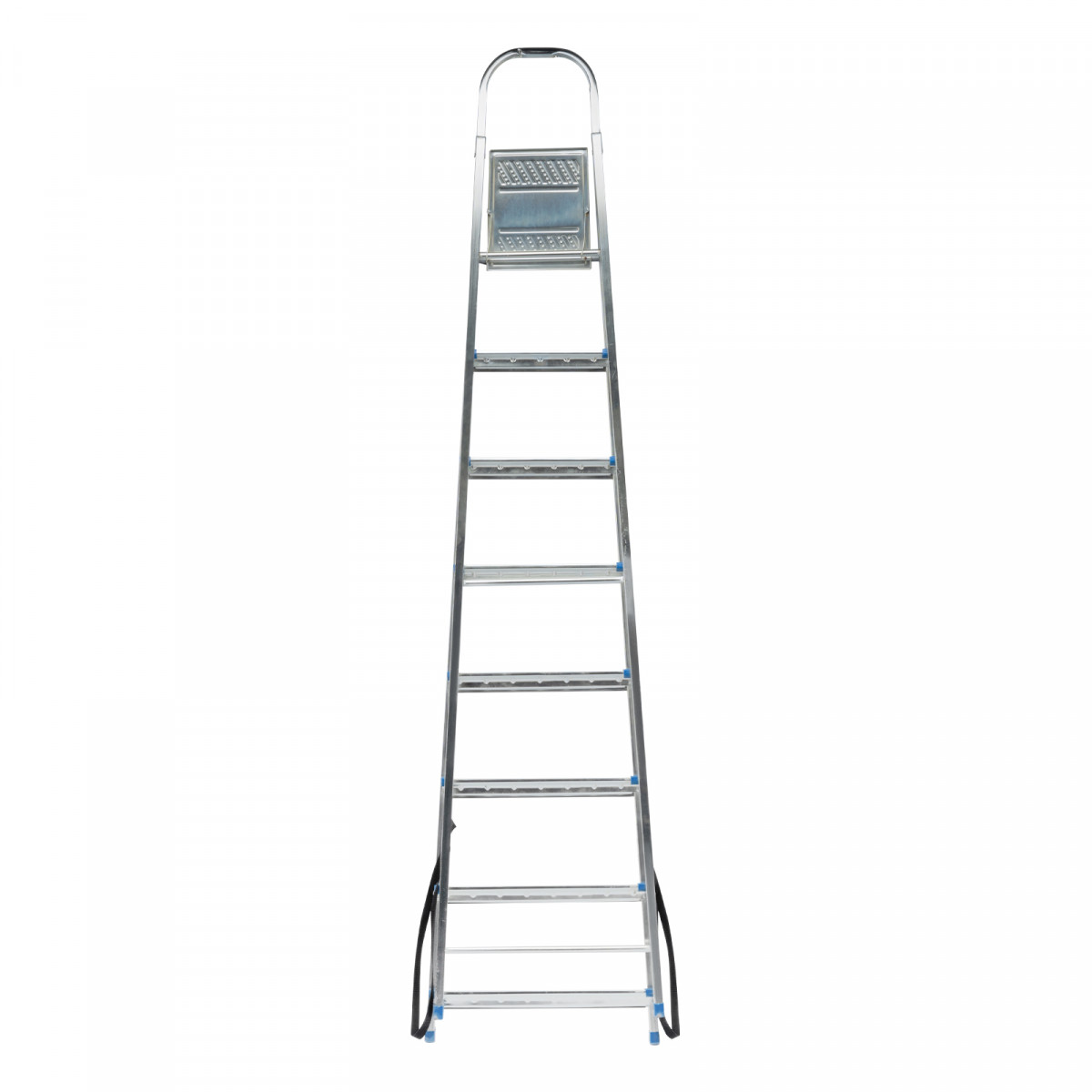 • Простая установка — на верхней площадке предусмотрены специальные зацепы для фиксации стремянки в разложенном состоянии.