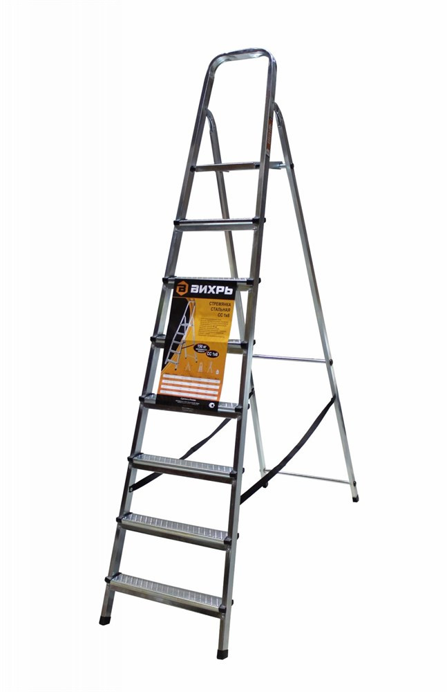 Алюминиевая стремянка с 8 ступенями от Вихрь - надежный и прочный помощник для выполнения работ на высоте.