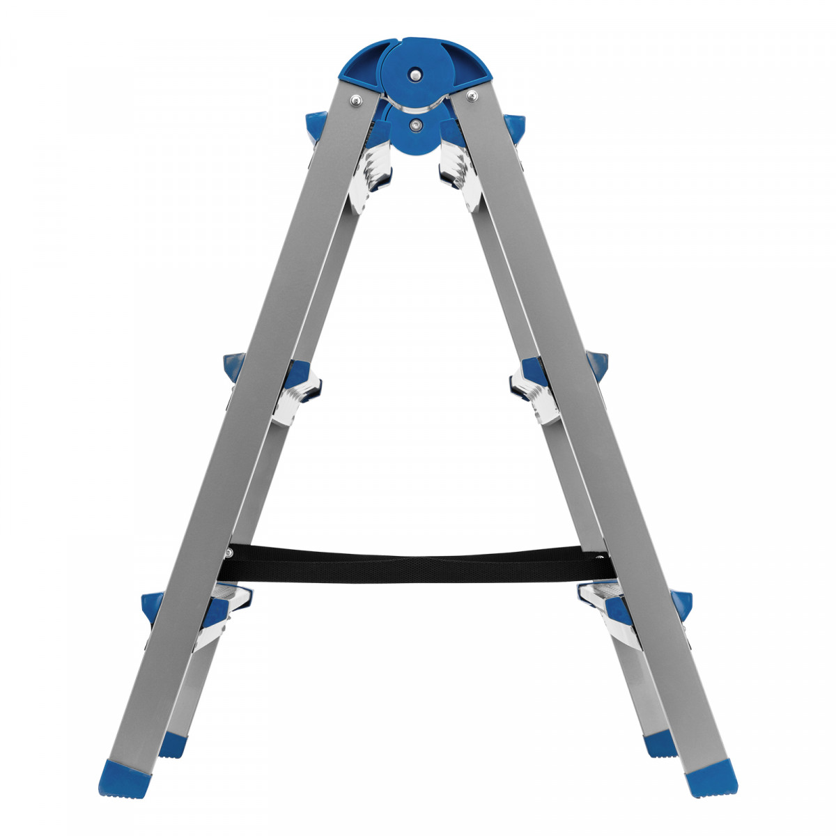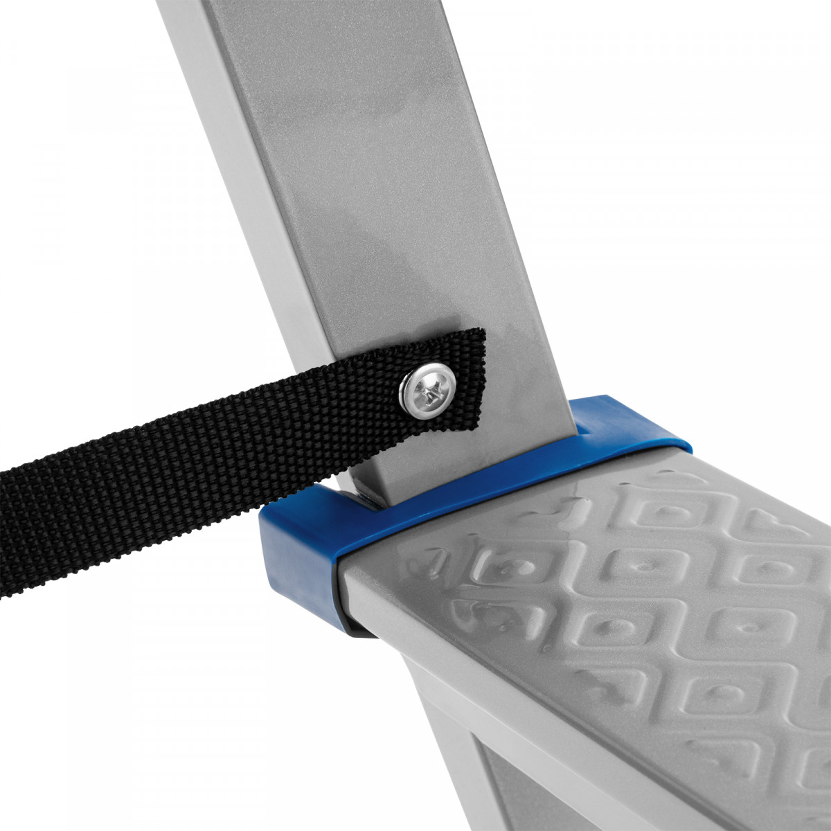 • Надежность — стремянка из стального профиля с широкими ступенями выдерживает вес до 120 кг, страховочные ленты из полиэстера повышают устойчивость.