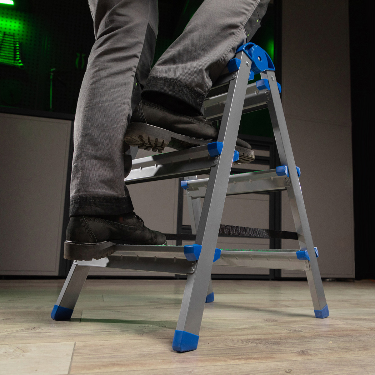 • Безопасность пользователя — на рифленых широких ступенях ступни не скользят, на углах имеются пластиковые наконечники для защиты от травм.