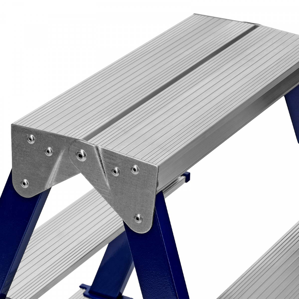 • Безопасность пользователя — широкие алюминиевые ступени не прогибаются, их рифленая поверхность не дает поскользнуться.