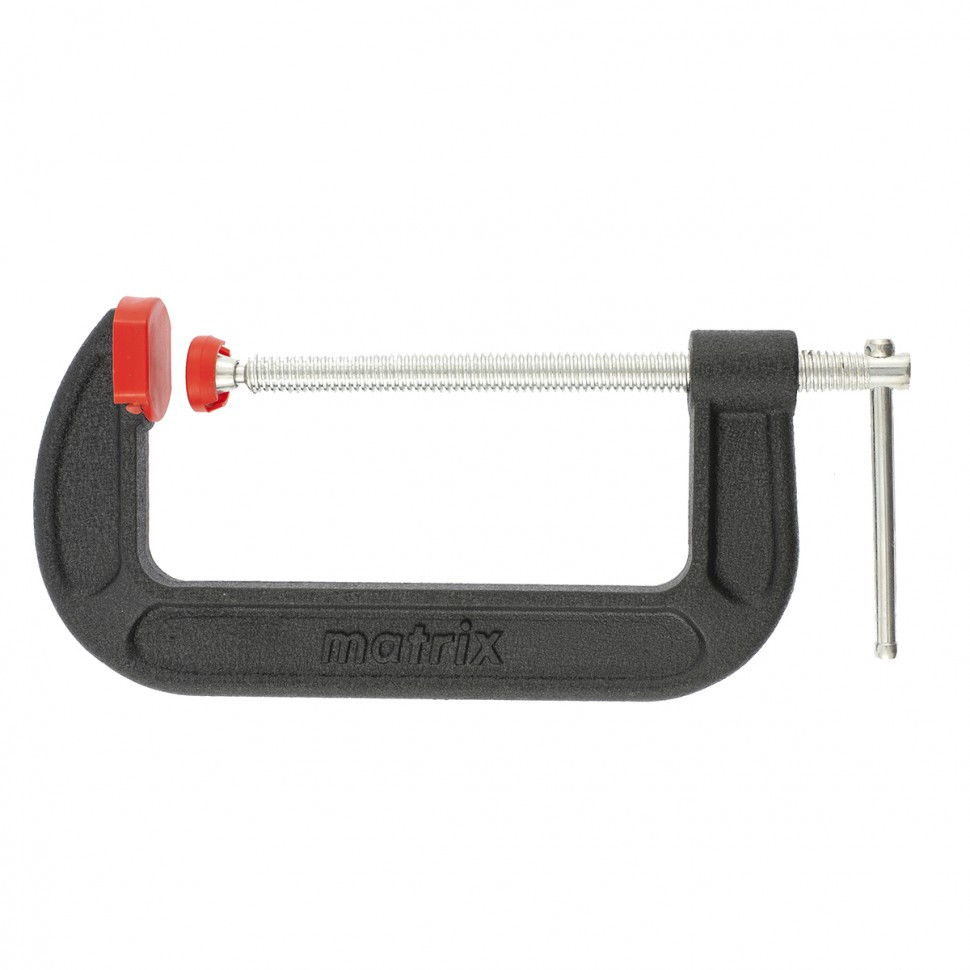 G-образная струбцина Matrix 20604 с максимальной шириной зажима 100 мм используется для фиксации заготовок или закрепления их на верстаке или станке. Позволяет склеивать детали, а также сверлить их, шлифовать, опиливать и проводить другие работы. Подходит для использования при сварке. Рама изготовлена из высокопрочного чугуна, поэтому выдерживает значительные усилия. Винт с трапециевидной резьбой обеспечивает надежную фиксацию предметов. Струбцина применяется в слесарном и столярном деле, а также в домашнем хозяйстве.