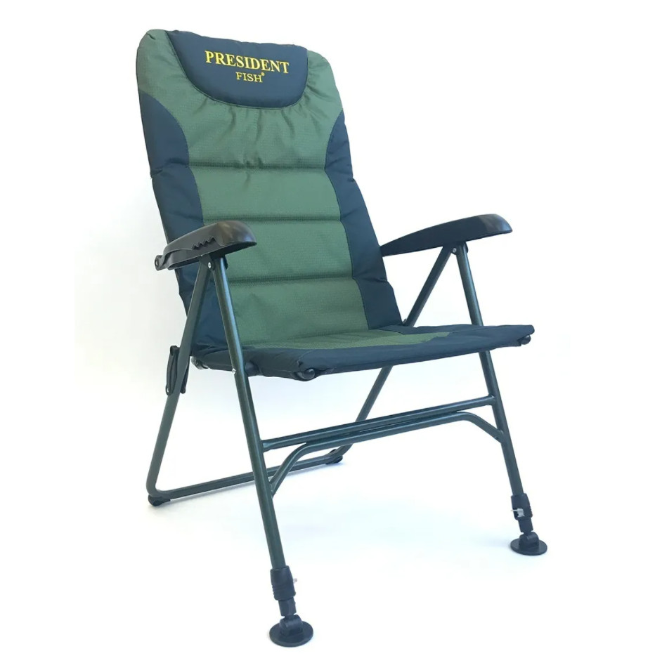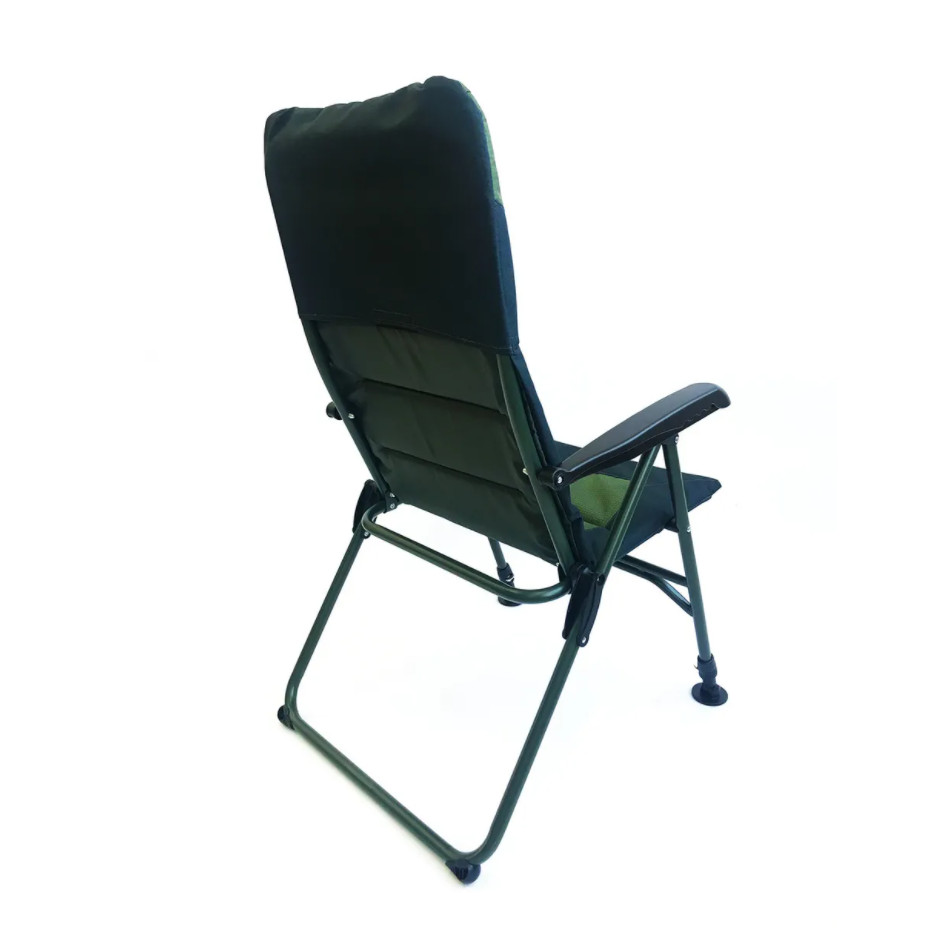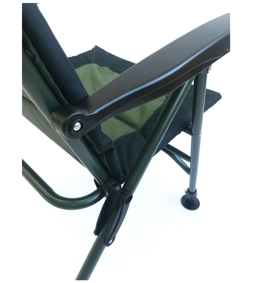 "Регулируемые ножки позволяют установить кресло на любой неровной поверхности. Мягкий неопреновый подголовник. Пластиковые подлокотники, регулируемые в 6 положениях. Размер: 50х39х41/102 см. • Каркас: стальная труба диаметром 22 мм. • Ткань: полиэстер 600D. • Нагрузка: 130 кг. • Вес: 6,2 кг."