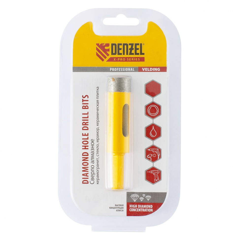 Сверло алмазное по керамограниту, 18 мм, мокрая резка, трехгранный хвостовик Denzel