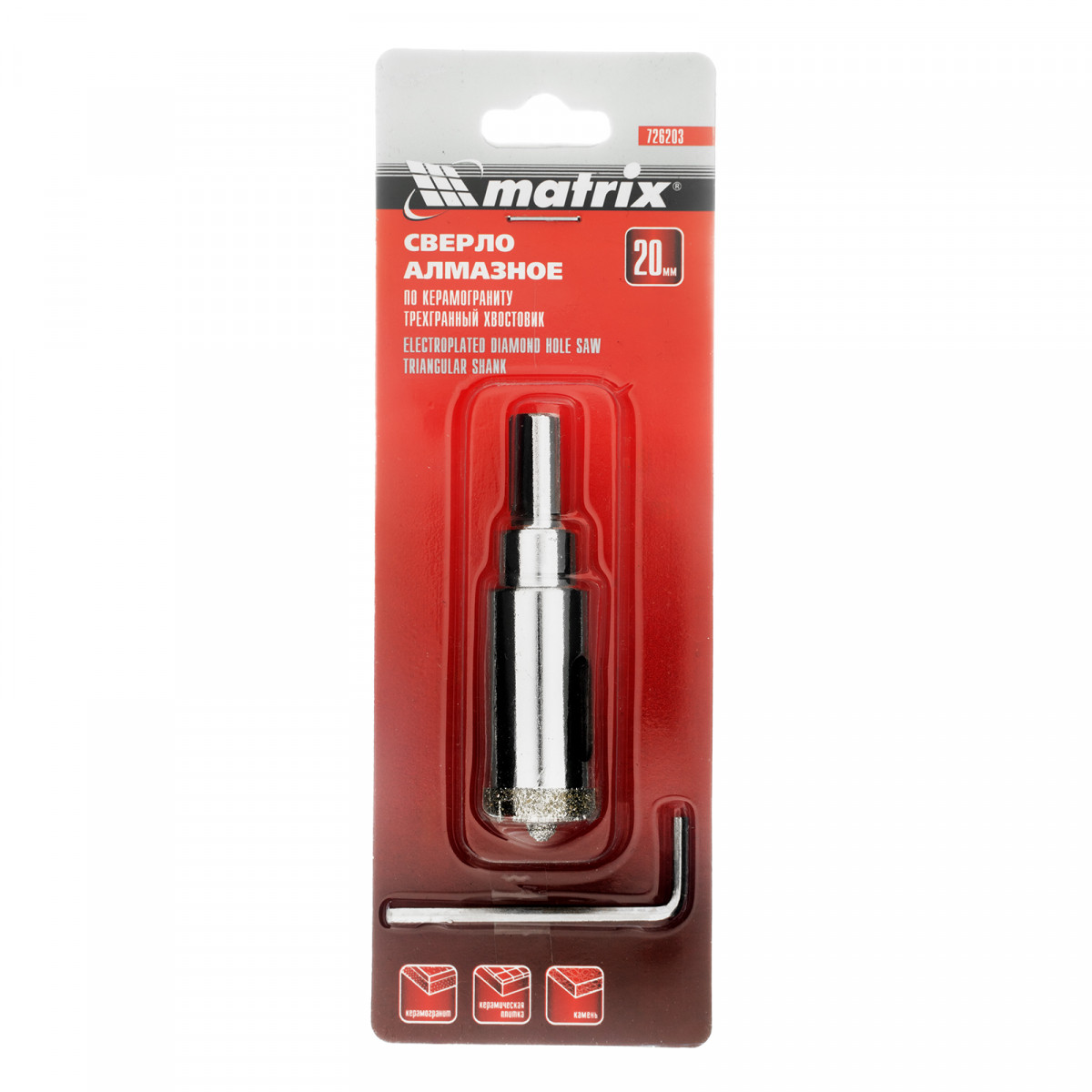 Сверло алмазное по керамограниту, 20 х 67 мм, трехгранный хвостовик Matrix