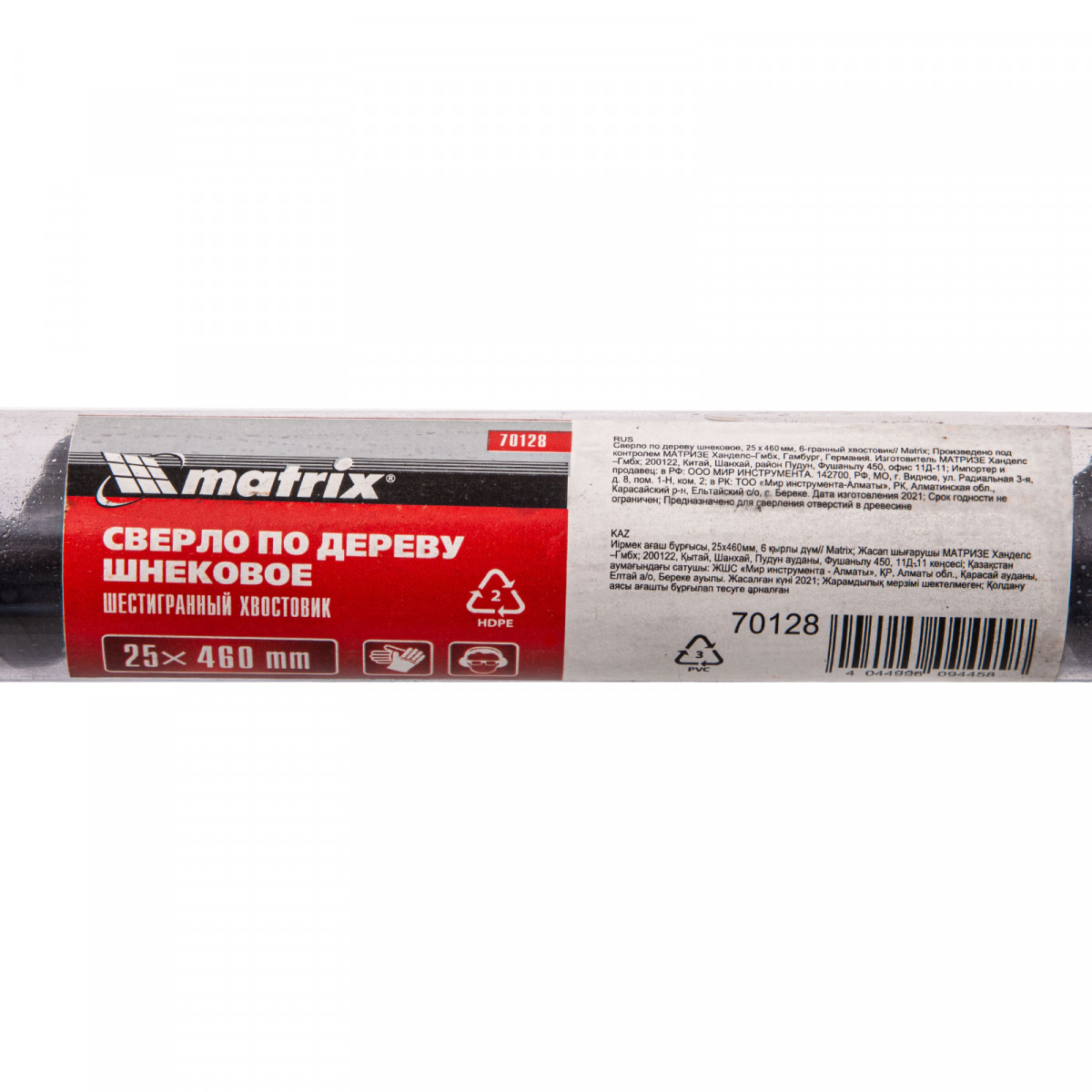 Сверло по дереву шнековое, 25 х 460 мм, шестигранный хвостовик Matrix