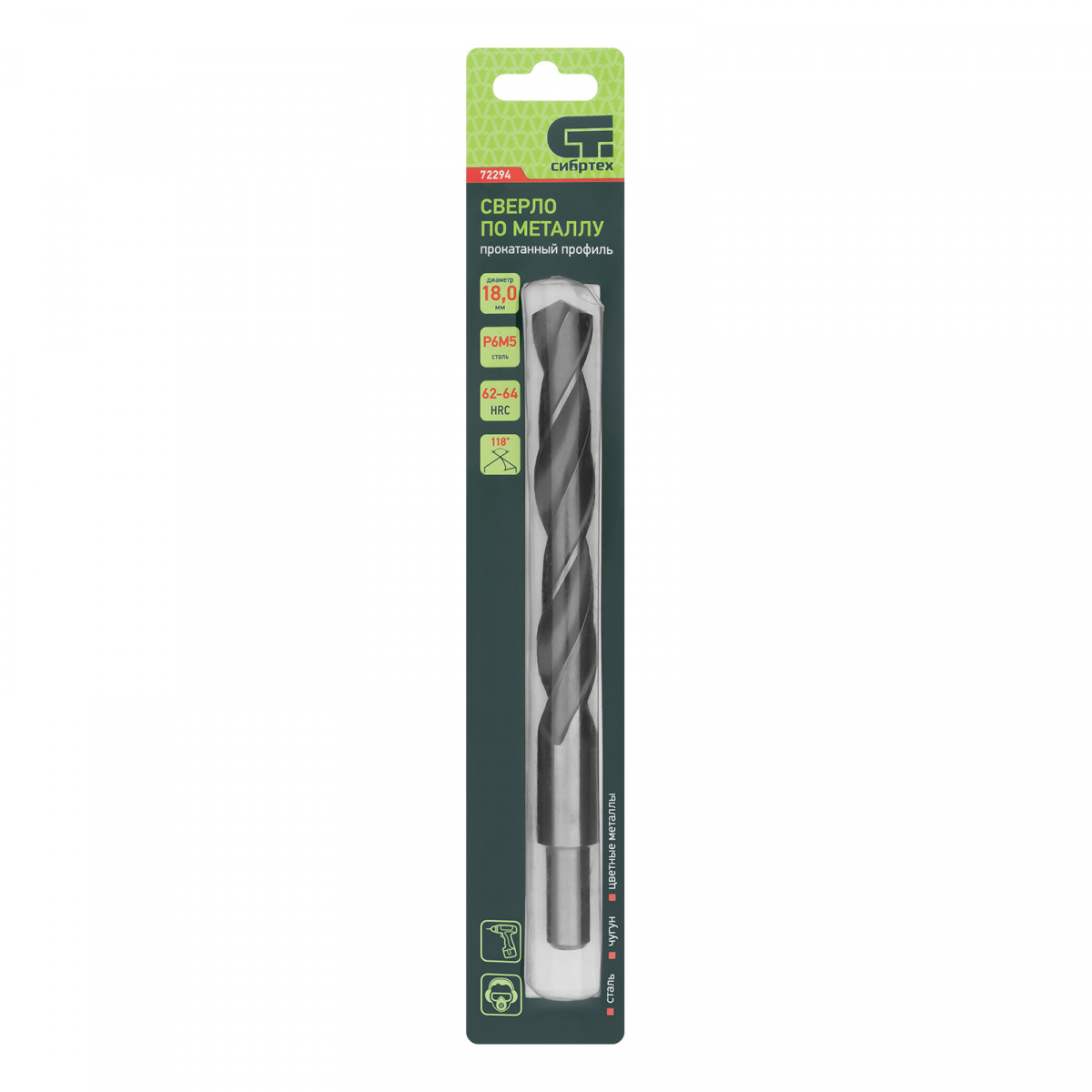 Сверло по металлу Сибртех 72294 диаметром 18,0 мм, имеет угол заточки 118°, оптимальный для получения отверстий в черных и тяжелых металлах, в том числе стали, чугуне и твердой бронзе. Отличается наиболее выгодной стоимостью по сравнению с другими моделями из стали P6M5. Используется для выполнения монтажно-сборочных работ, будет полезно в быту.