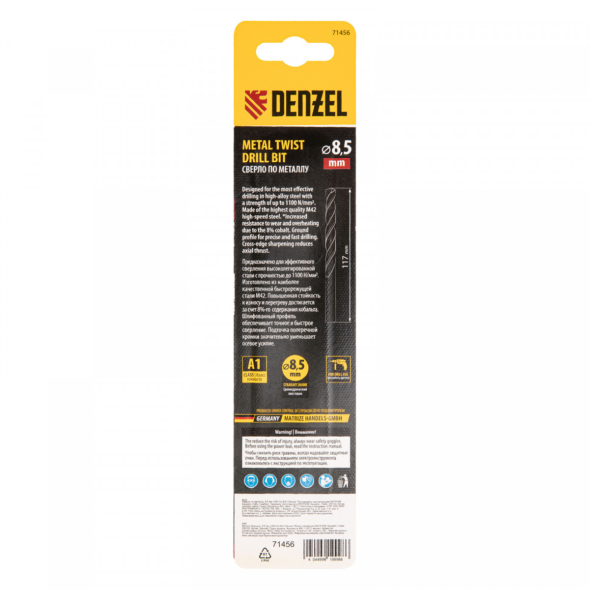 Сверло по металлу, 8,5 мм, HSS Co-8%// Denzel