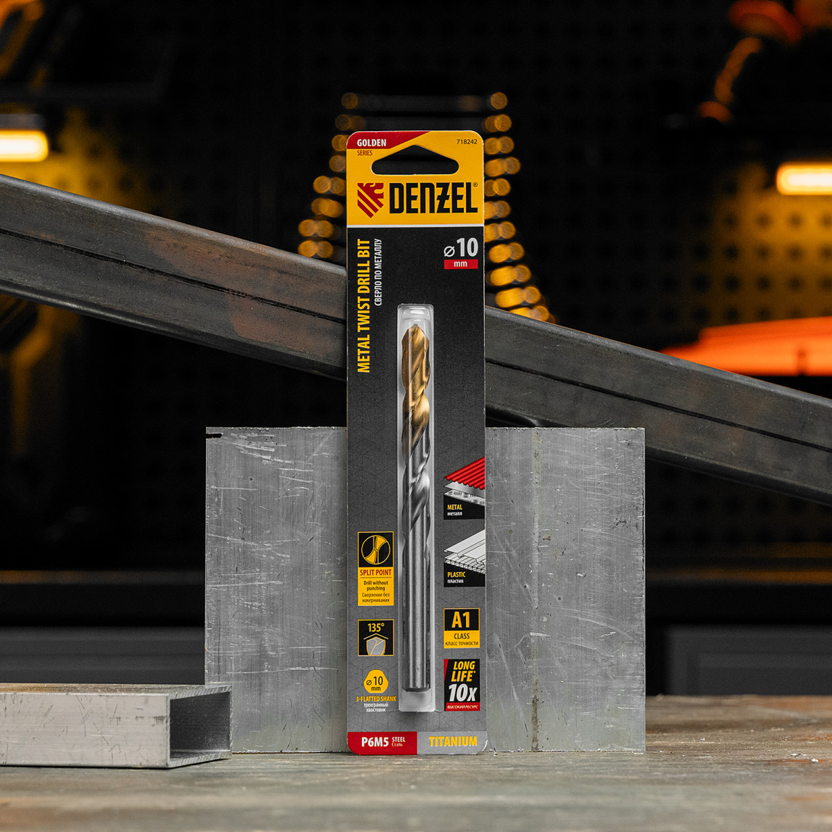 Сверло спиральное по металлу 10 x 133 мм, Р6М5, Golden Tip Denzel
