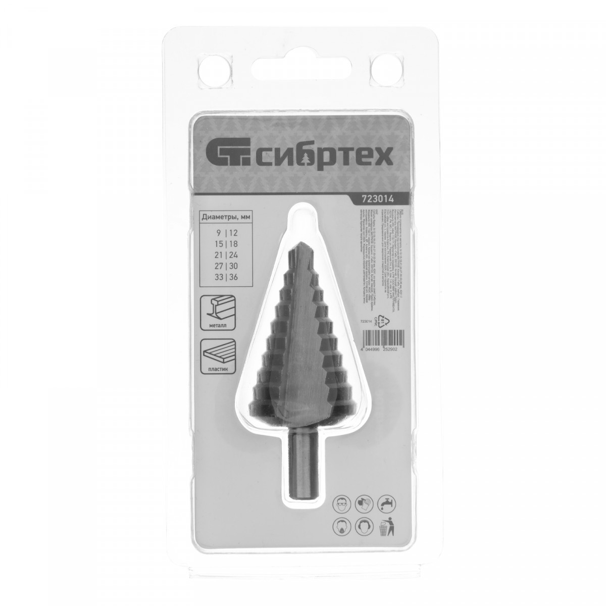 Сверло ступенчатое по металлу, 9-12-15-18-21-24-27-30-33-36 мм, 4241 Сибртех