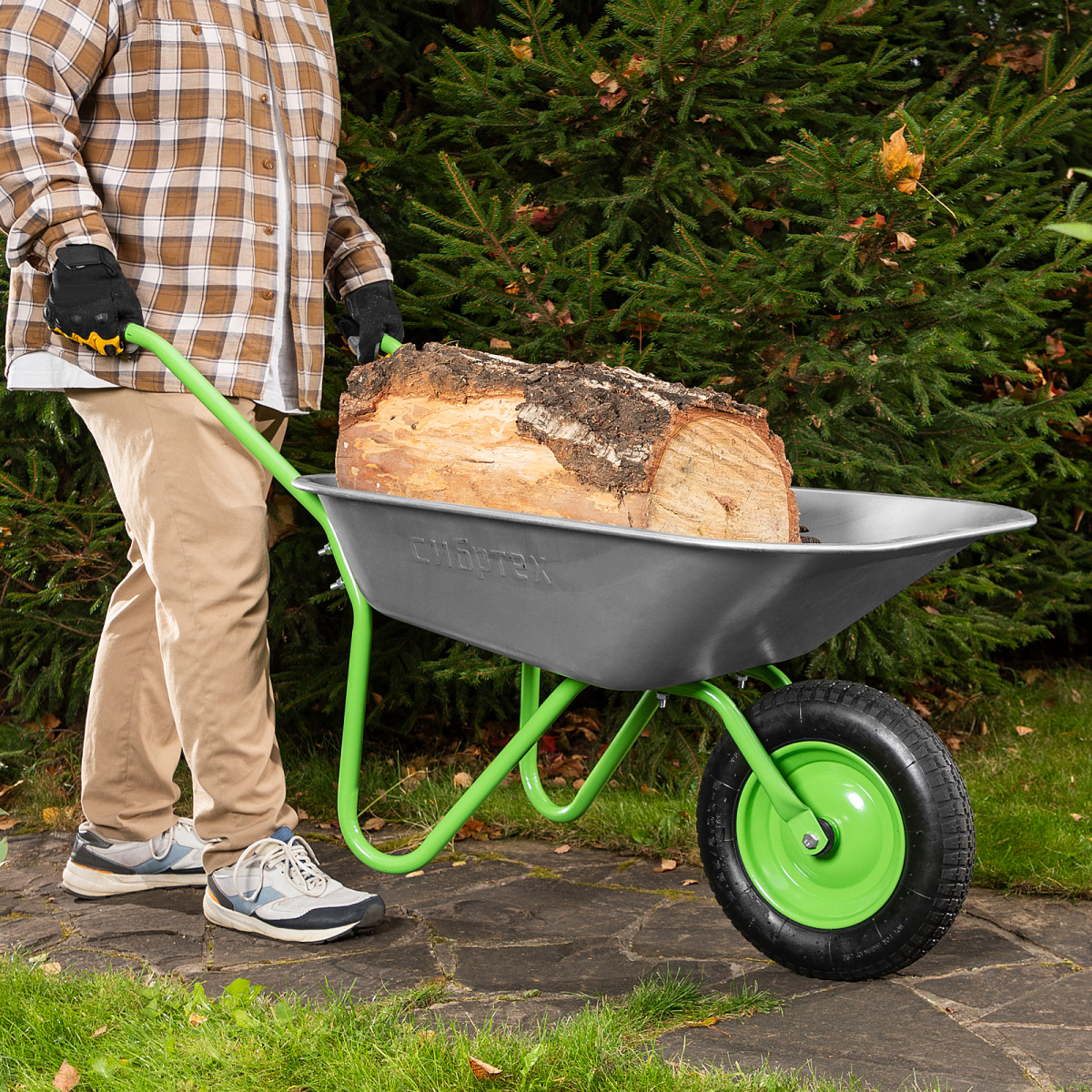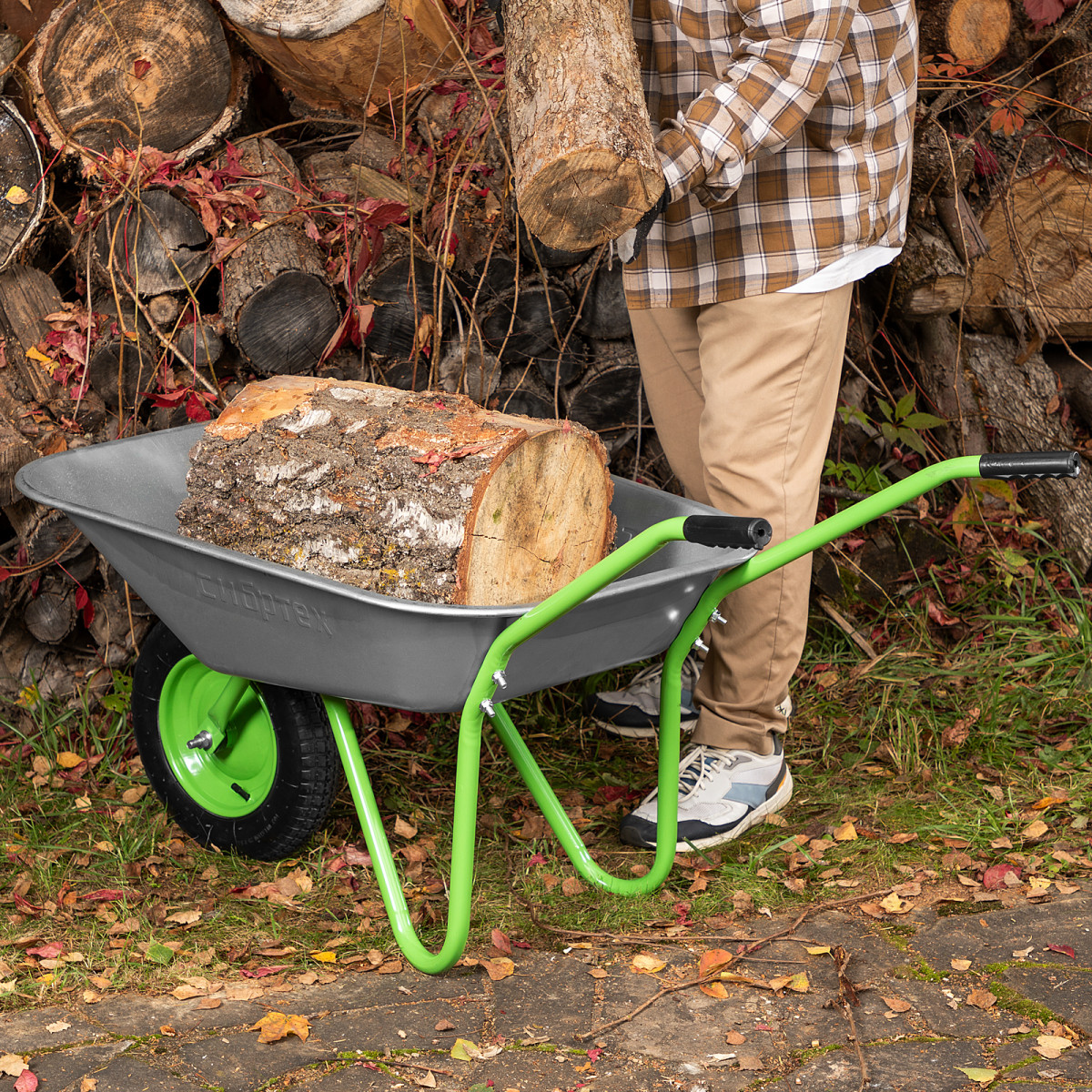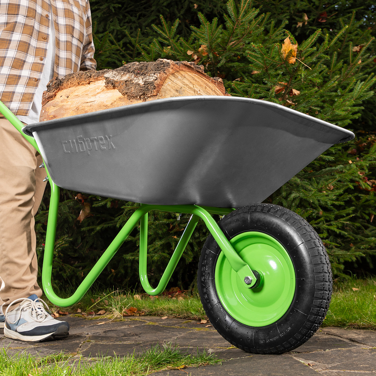 • Мобильность —благодаря небольшому весу 7 кг и колесу на двух шариковых подшипниках даже нагруженную тачку легко перемещать.