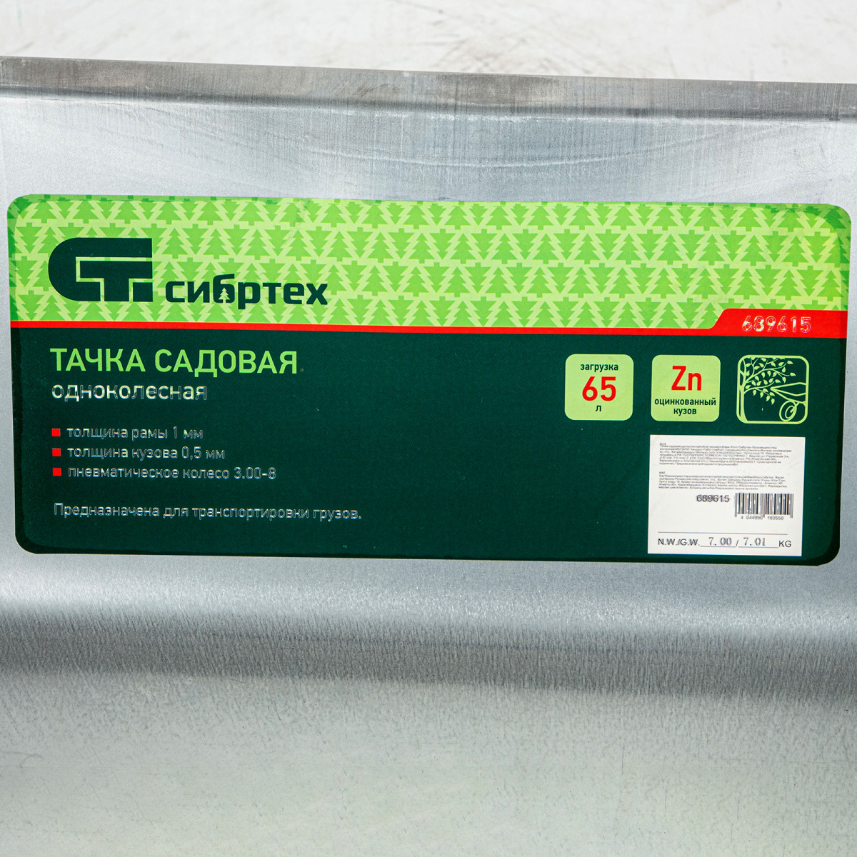 Тачка садовая, облегченная, объем 65 л Сибртех 689615