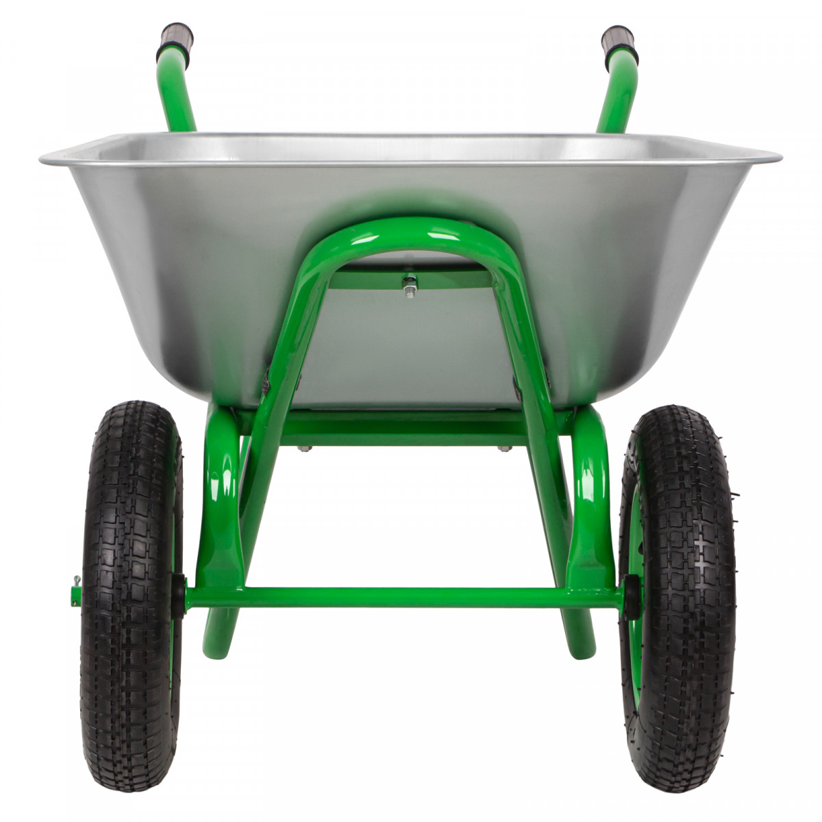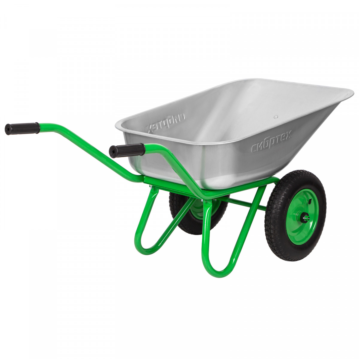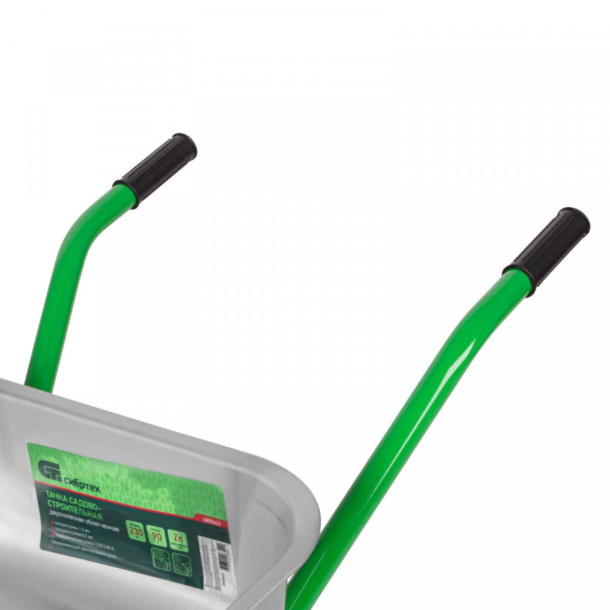 Двухколесная садово-строительная тачка Сибртех 689643 грузоподъемностью 230 кг, с объемом кузова 90 л, предназначена для перемещения грузов во время работы на строительной площадке или в саду. В ней можно перевозить грунт, щебень или строительные смеси. 2 колеса обеспечивают высокую грузоподъемность, а также устойчивость во время движения по прямой и на поворотах. Вес груза распределяется равномерно, поэтому тачка не проваливается даже в рыхлый грунт.