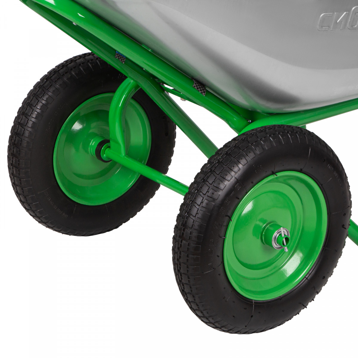 • Удобное перемещение даже по неровной поверхности — пневмоколеса с камерами и резиновыми шинами повышают плавность хода, каждое имеет по 2 шариковых подшипника, облегчающих вращение и препятствующих износу.