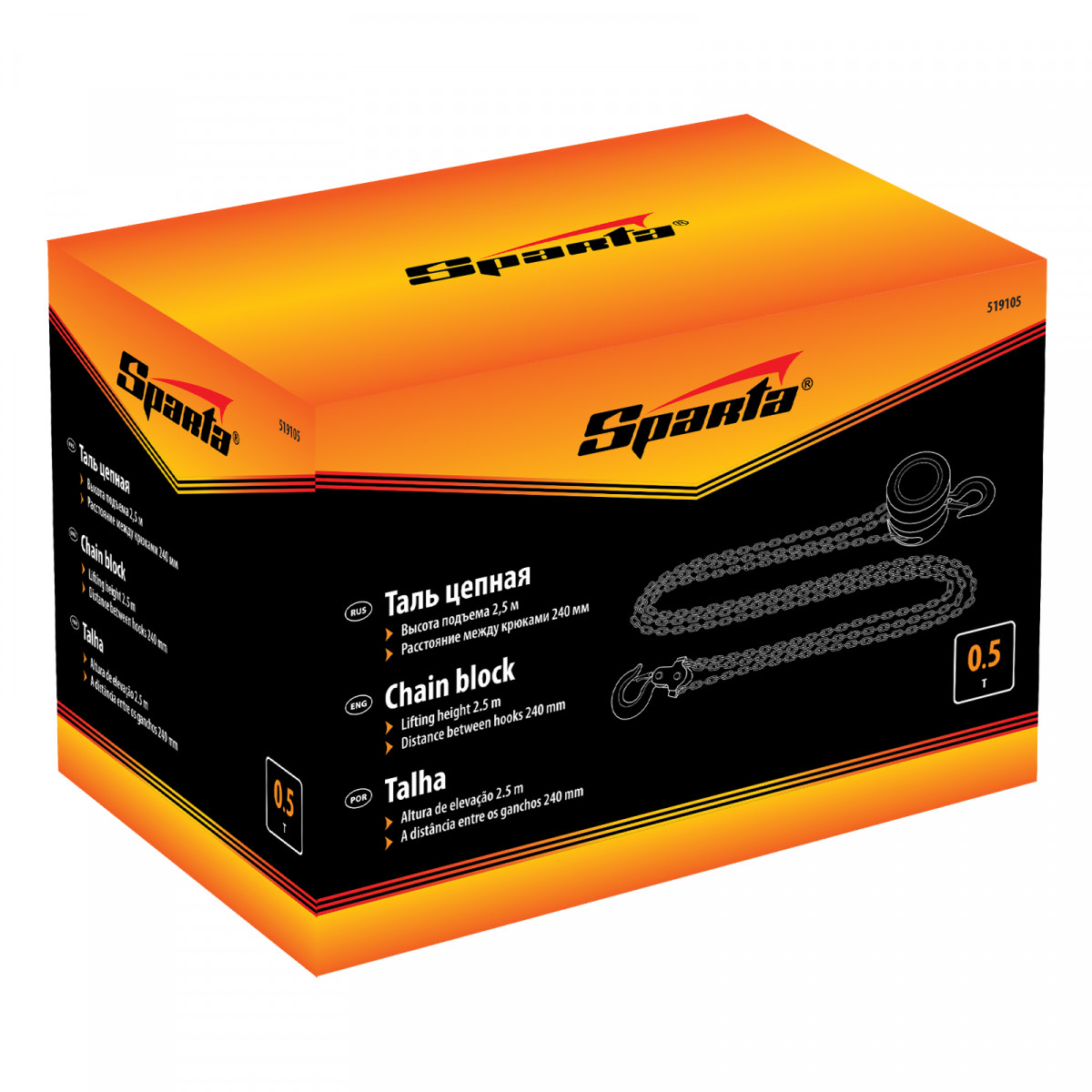 Таль цепная, 0.5 т, H подъема 2.5 м, расстояние между крюками 240 мм Sparta