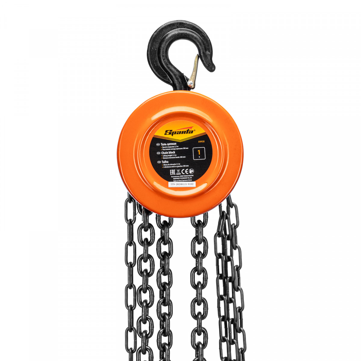 Таль цепная, 1 т, H подъема 2.5 м, расстояние между крюками 300 мм Sparta