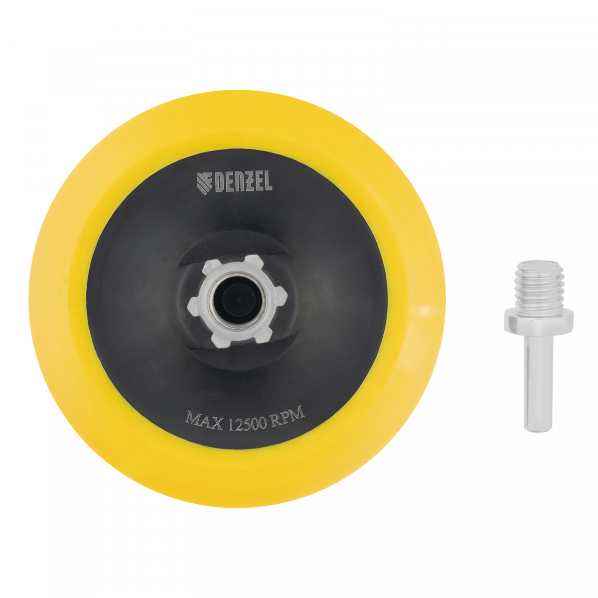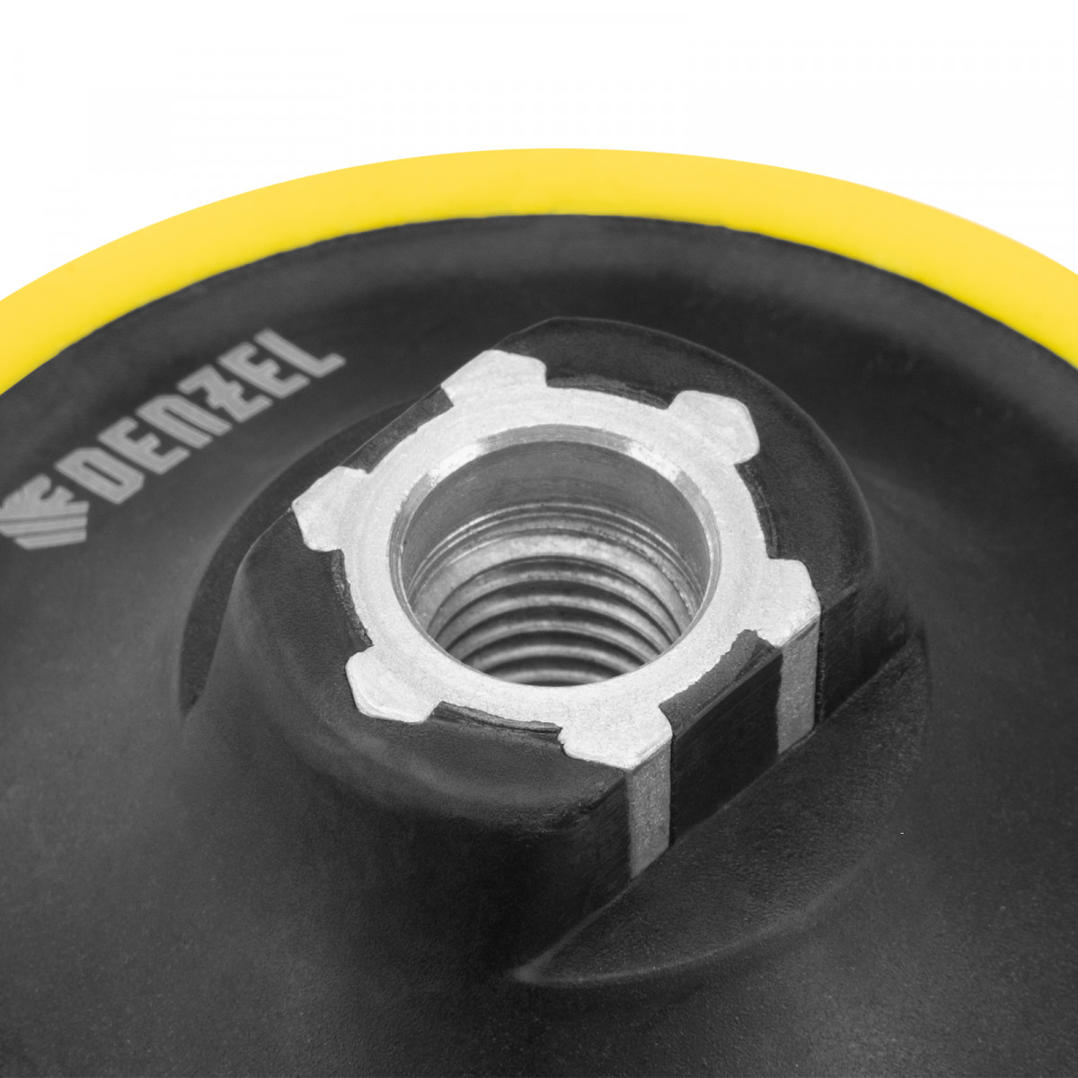Тарелка опорная для дрели и УШМ с липучкой, 115 мм, мягкая, с адаптером c М14 на d8 Denzel