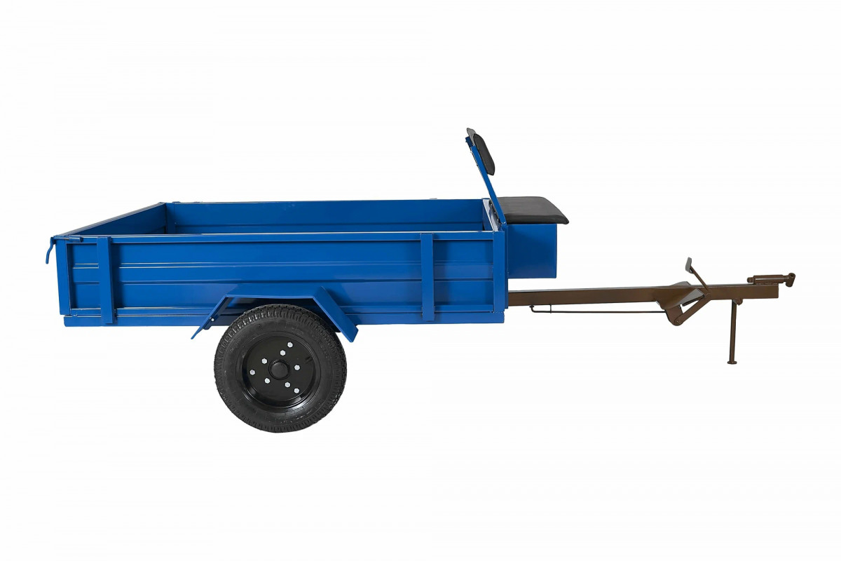 Тележка прицепная ТМ-500/2 (2х местная) к мотоблокам мощностью не менее 3..5 кВт, предназначена для перевозки различных сельскохозяйственных, строительных материалов и других грузов в приусадебных хозяйствах, в садах и огородах коллективного и индивидуального пользования, на животноводческих фермах, в теплицах и коммунальном хозяйстве. Тележка используется в агрегате с мотоблоками: КАСКАД, МБ-1Д -Ока, МБ-1Д2-Ока, МБ-2К-Нева, АГРО, УРАЛ, УРАЛ-3. и др. Технические характеристики ТМ-500/2 Грузоподъемность, кг, не более 500 Рабочая скорость движения, км/ч, не более 10 Габаритные размеры, не более (длина, ширина, высота) 2950*1320*900 Размеры кузова внутренние, не более (длина, ширина, высота) 1700*1180*275 Размер кузова при горизонтальном положении бортов, не менее (длина, ширина, высота) - 2060*1860*270 Дорожный просвет, мм, не менее 520 Колея колеса, мм 1100 Угол наклона кузова, градус, не менее - 40 Шины 5.00-10 Давление в шинах, мПа (кгс/кв.св) 0.2(2) Масса, кг 130 Разгрузка кузова, направление- назад Характ