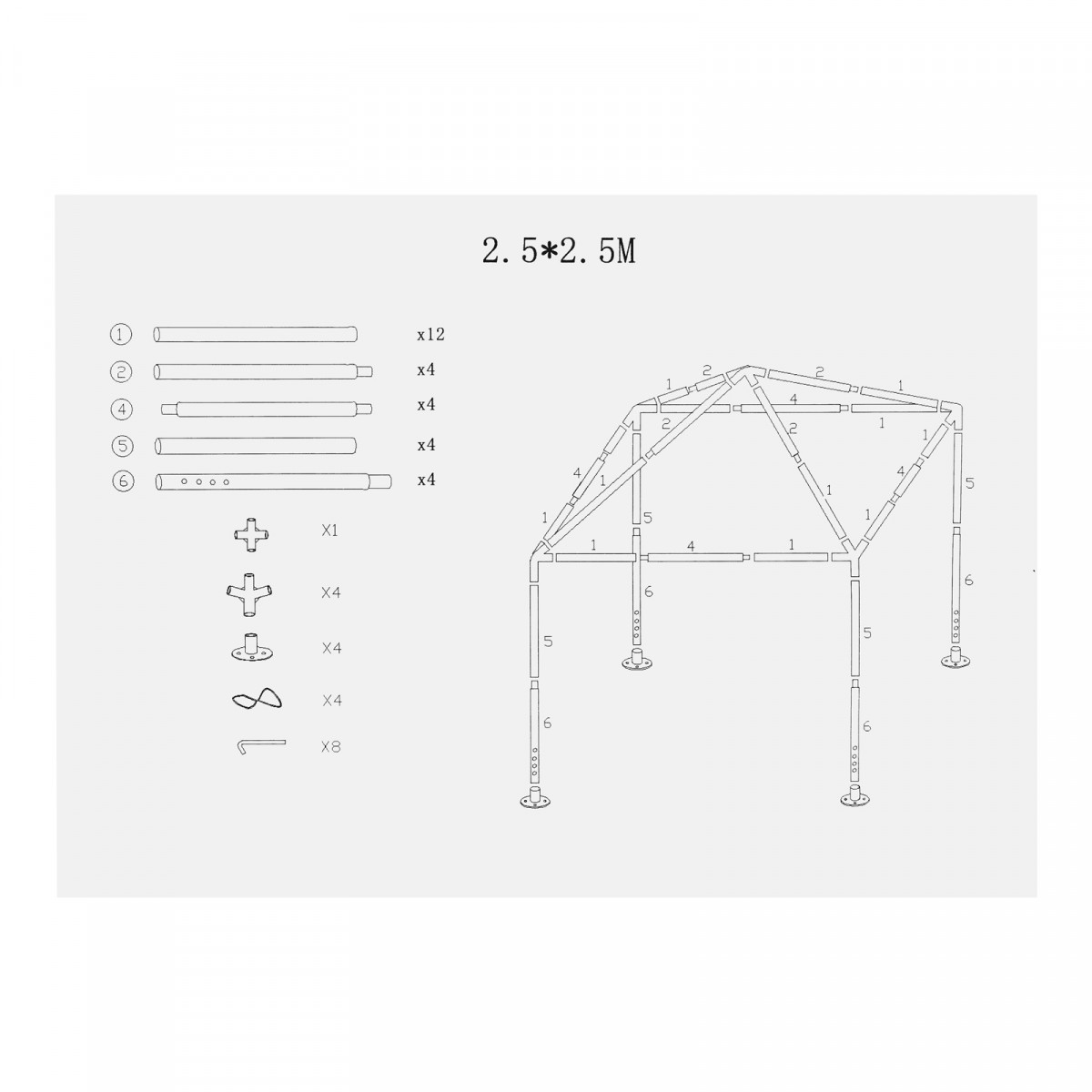 Стальной каркас из трубок диаметром 18/18/24 мм обеспечивает прочность и надежность конструкции тента.